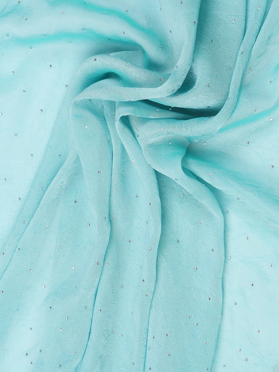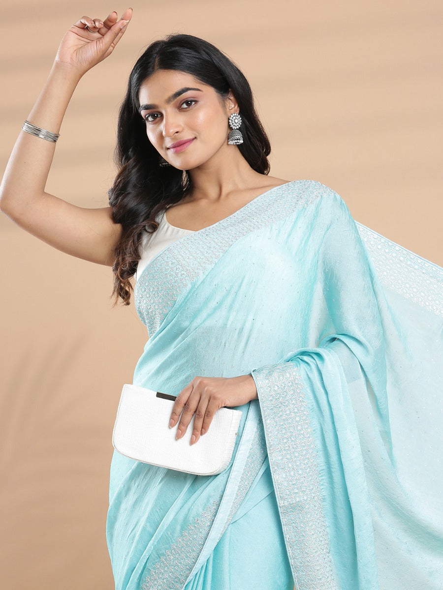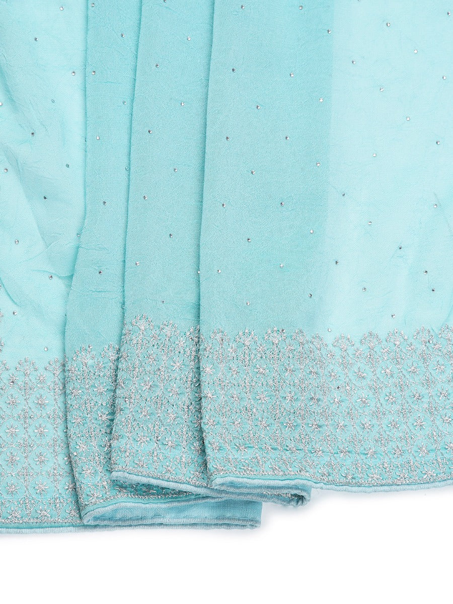 Light Blue Color Crushed Georgette Crepe Saree With Mini Stone Work