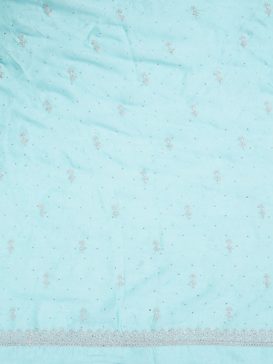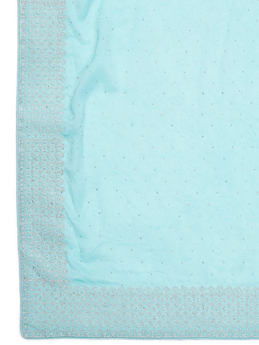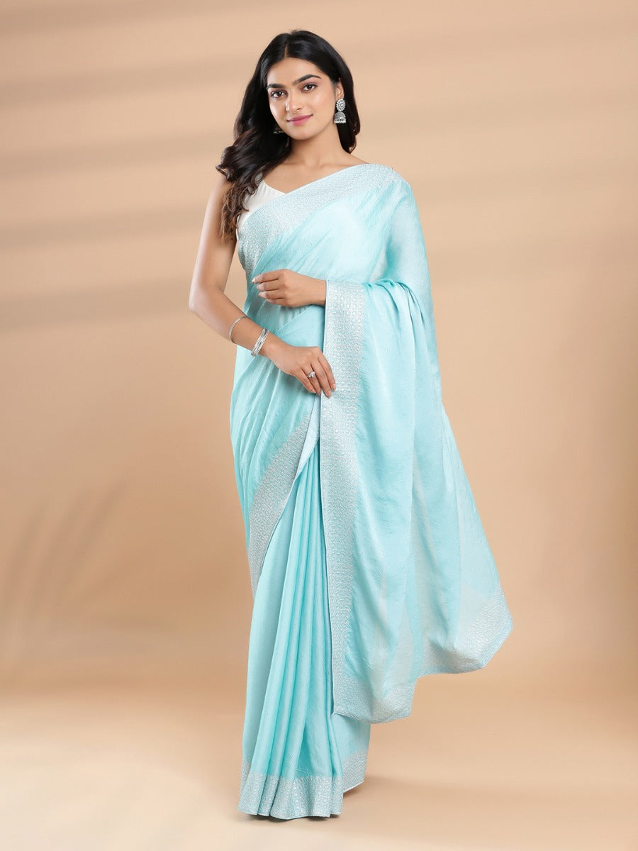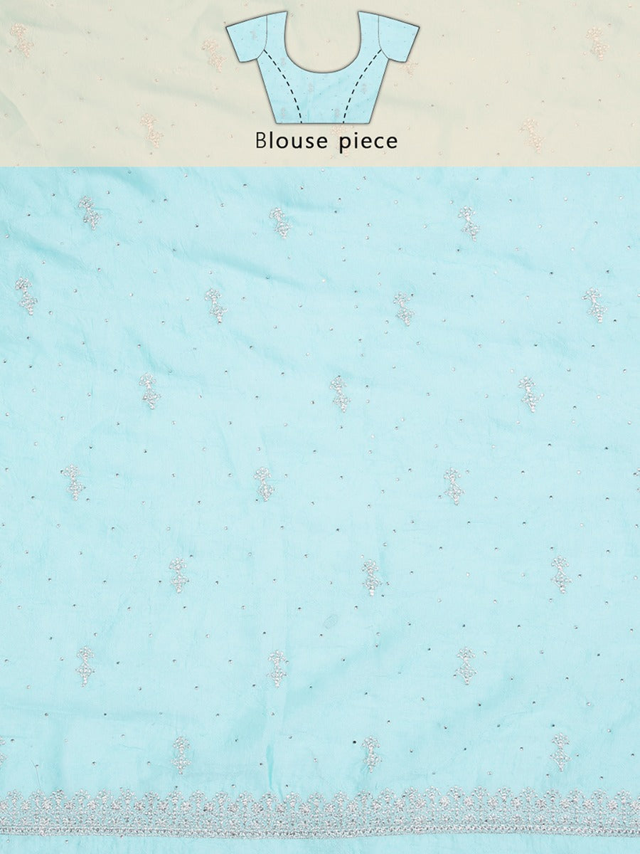 Light Blue Color Crushed Georgette Crepe Saree With Mini Stone Work