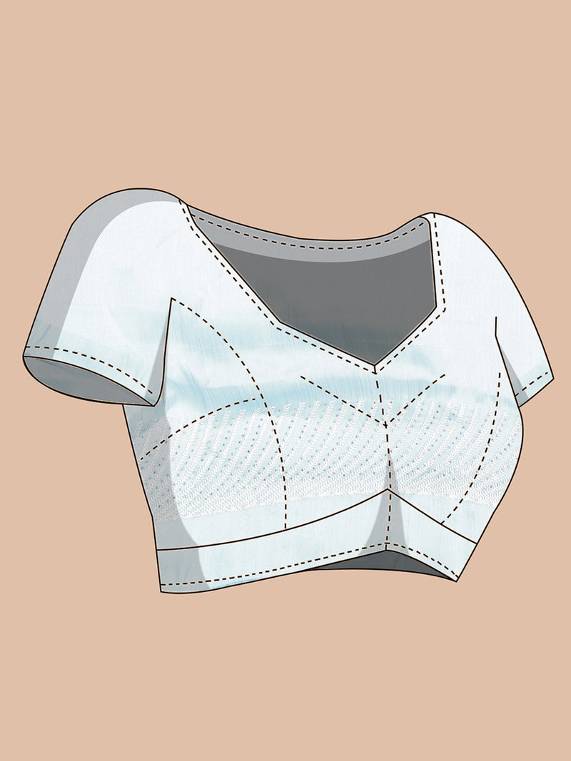 The blouse worn by the model might be for modelling purpose only. Check the image of the blouse piece to understand how the actual blouse piece looks like.