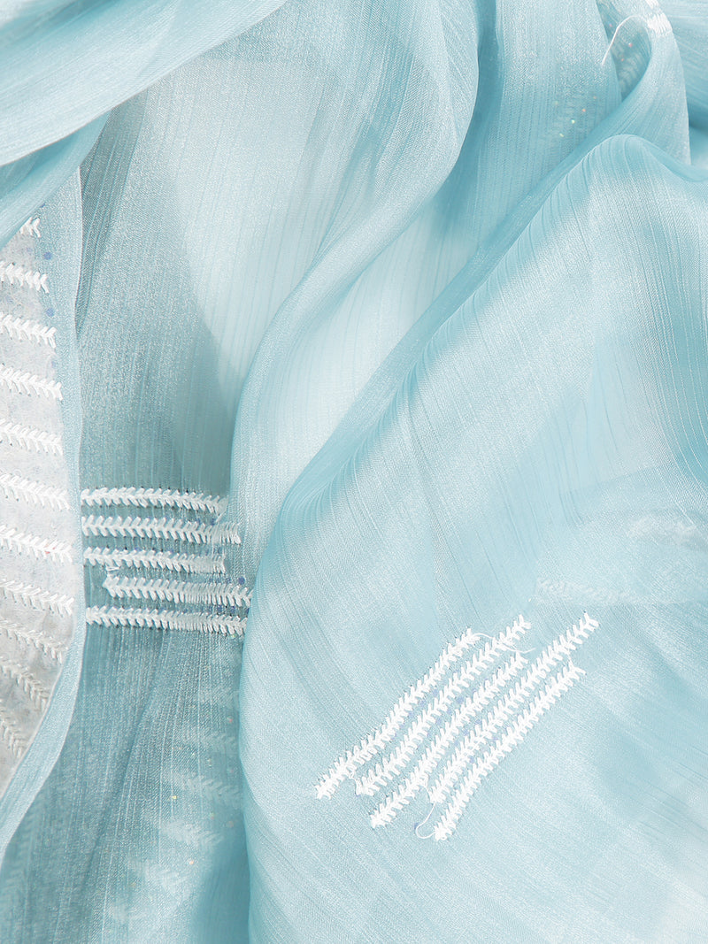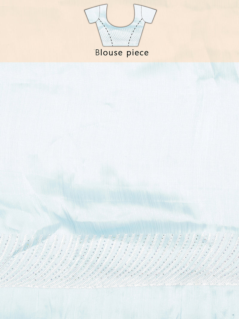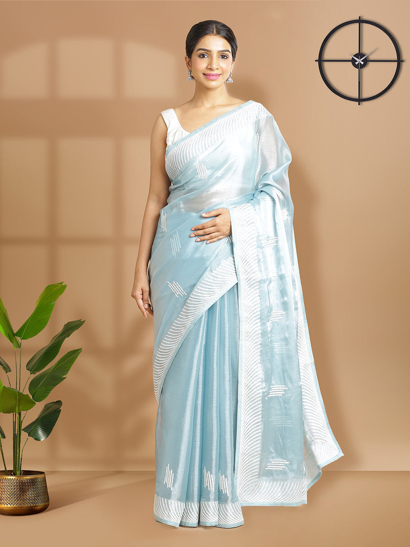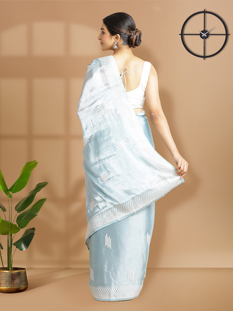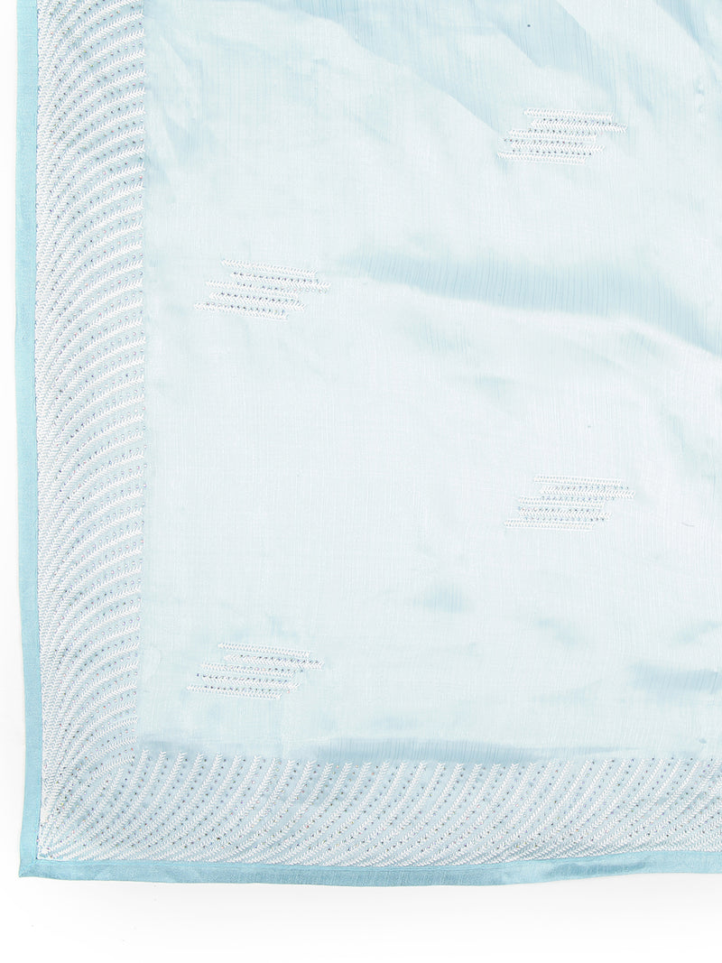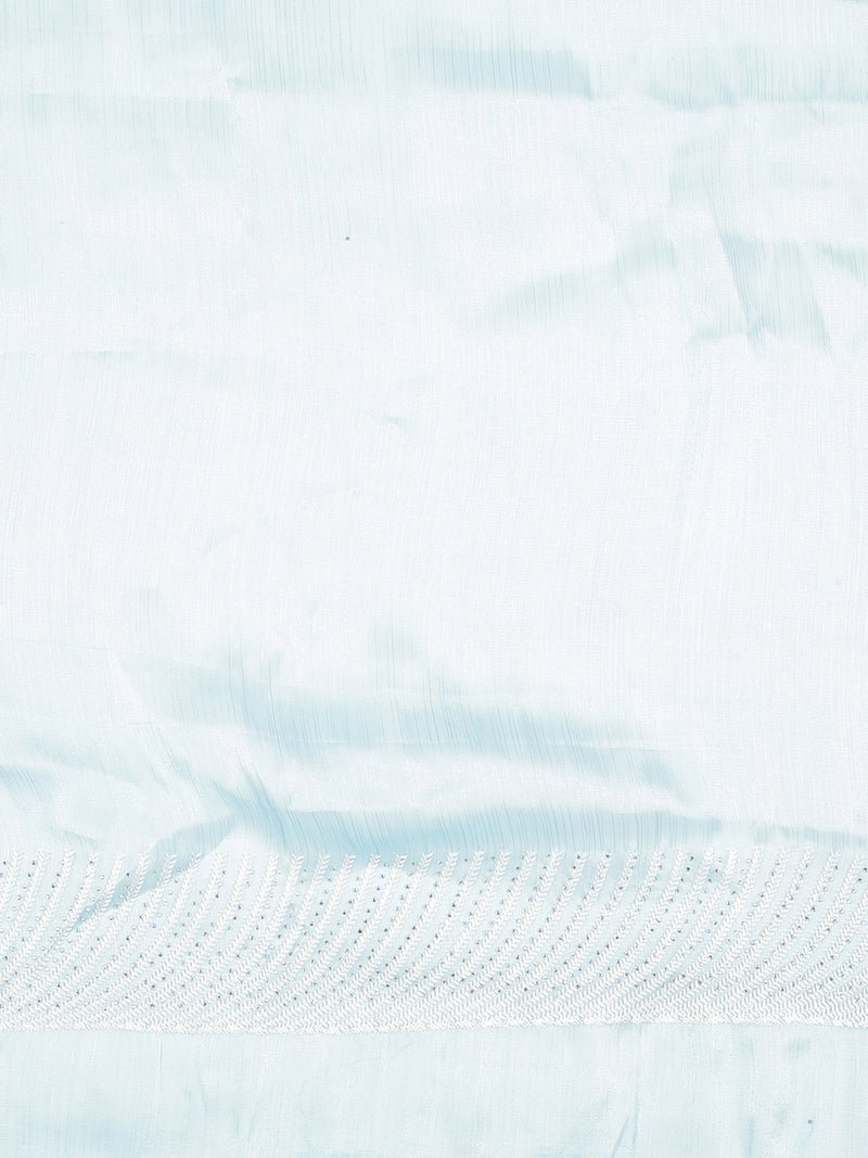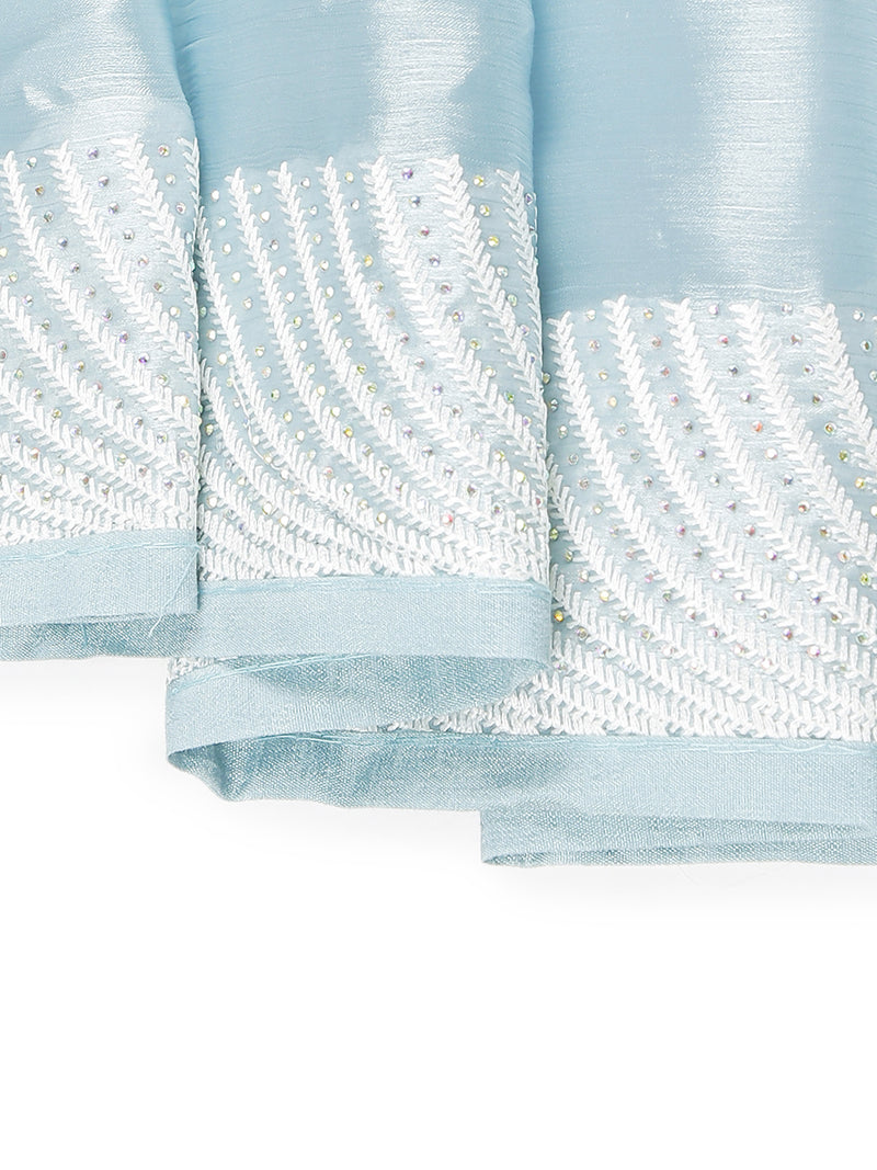 Light Blue Organza Saree With Thread And Stone Work Over Body