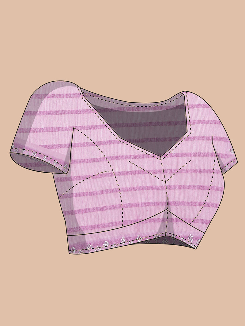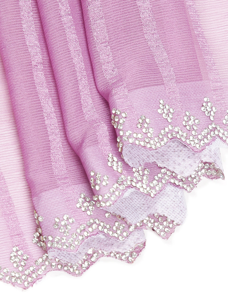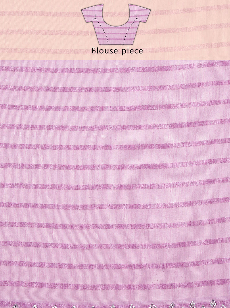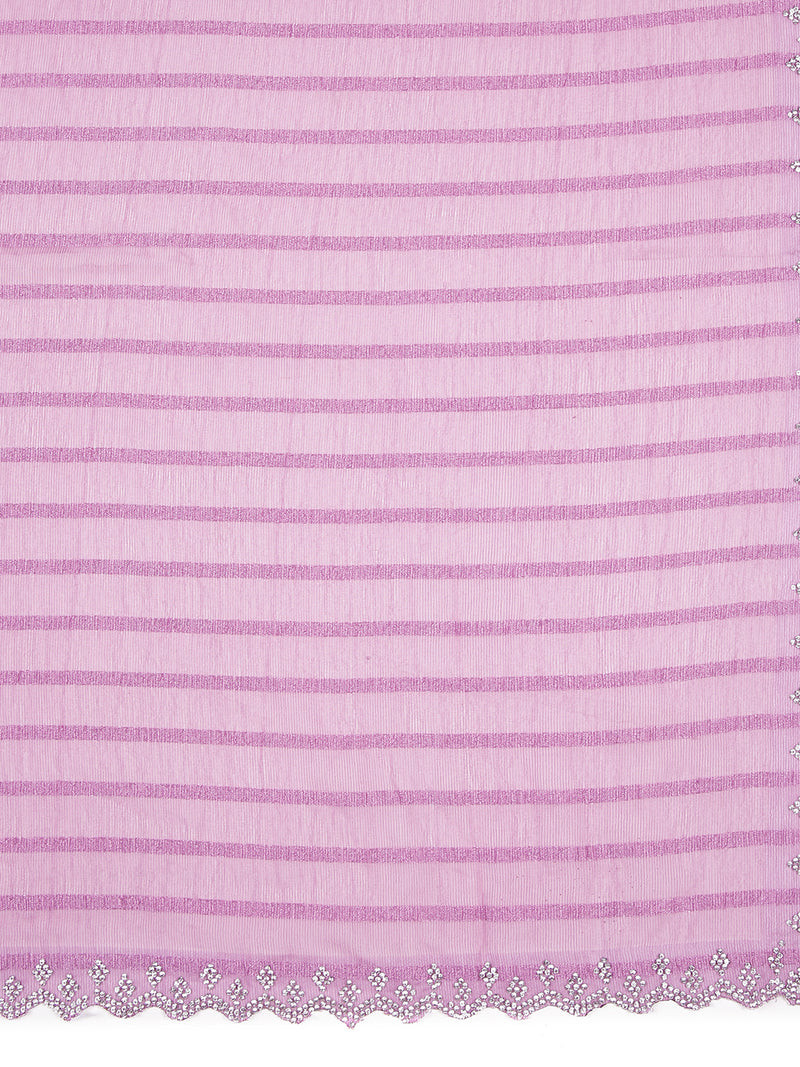Add a touch of subtle elegance with this light purple georgette saree featuring delicate self stripes running throughout the body. Lightweight and graceful, it’s perfect for both casual and formal occasions.