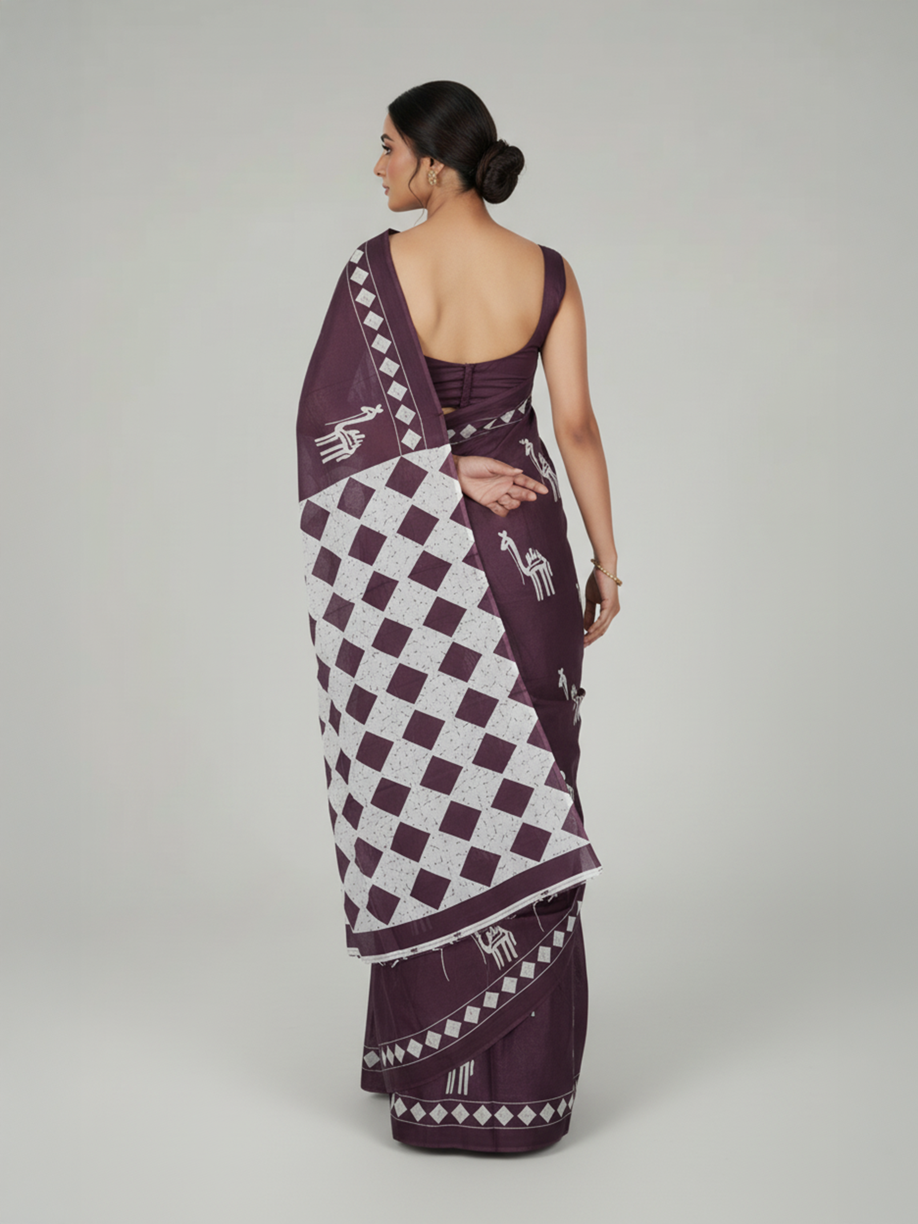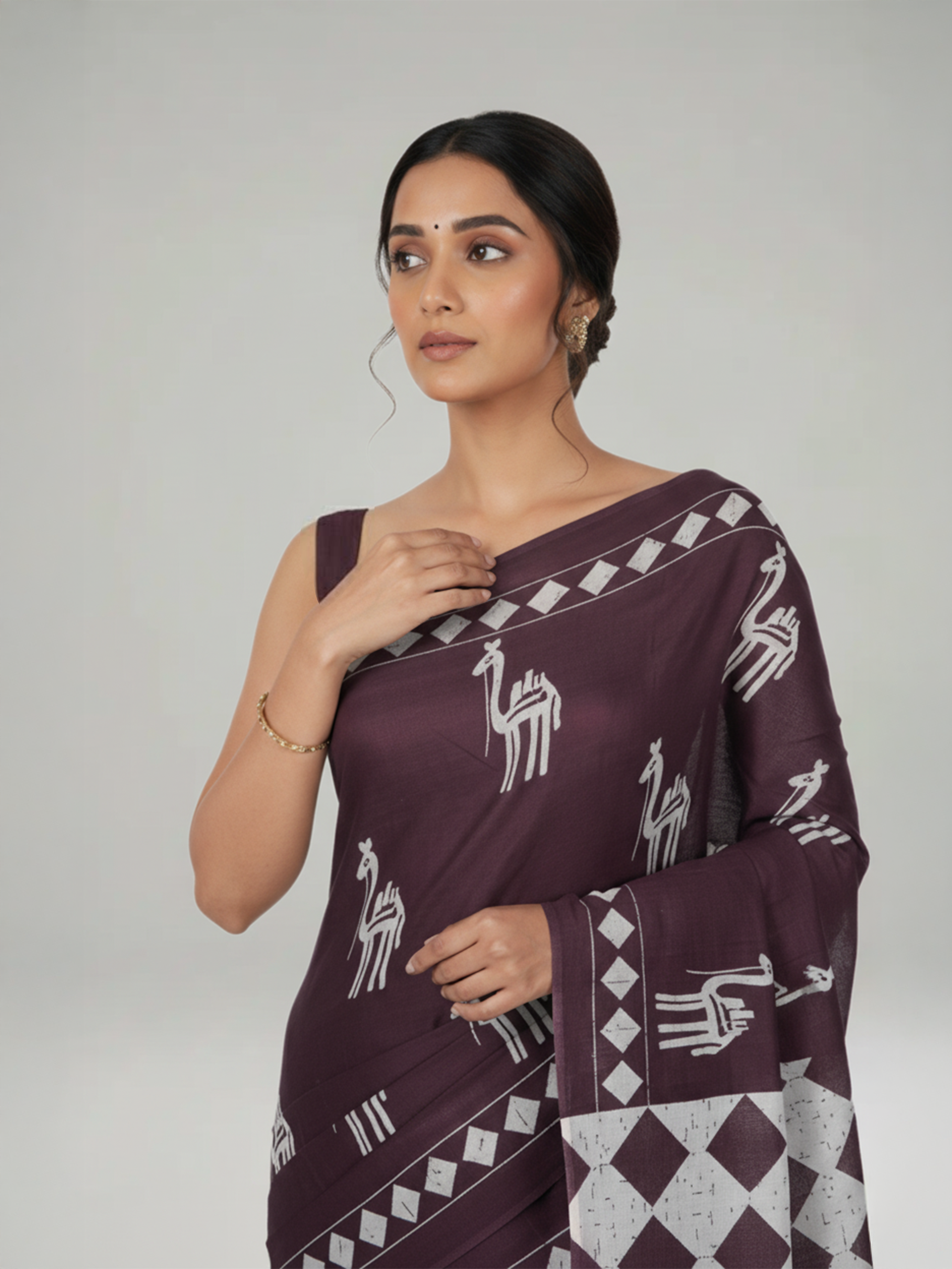 Light Wine Soft Cotton Saree With Printed Design