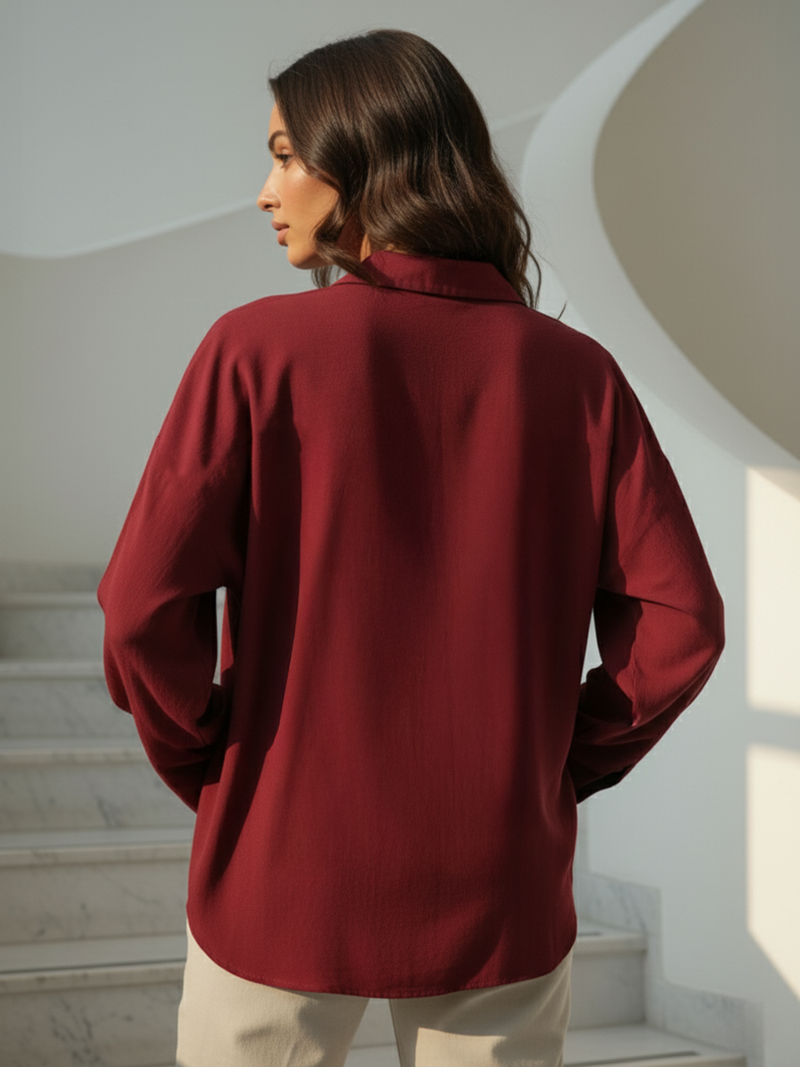 Maroon Rayon Crepe Plain Formal Shirt For Women