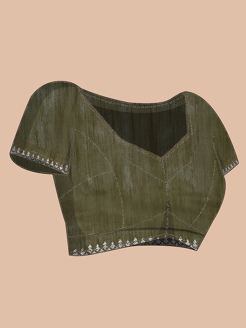 Elevate your ethnic collection with this rich Mehandi Green Vijithra silk saree, featuring elegant horizontal thread stripes across the body. The luxurious silk fabric offers a smooth texture and vibrant sheen, perfect for festive celebrations and traditional events.
