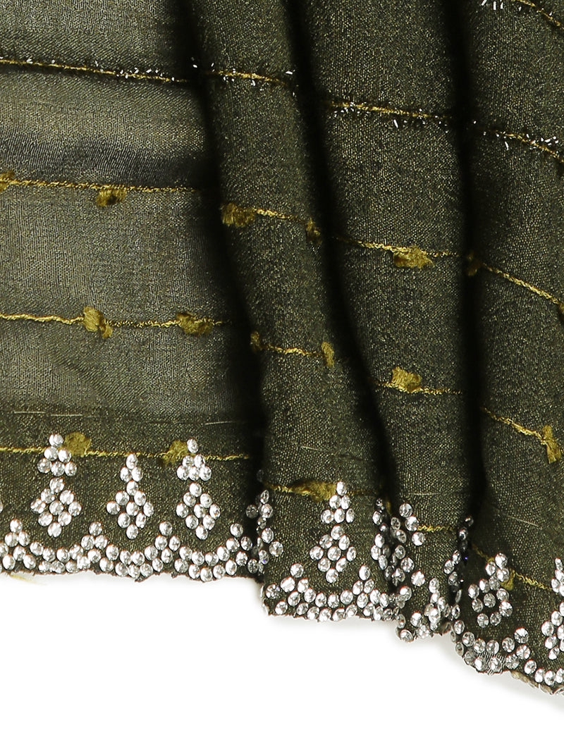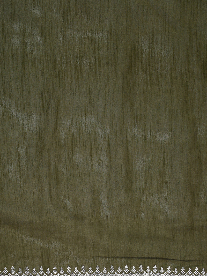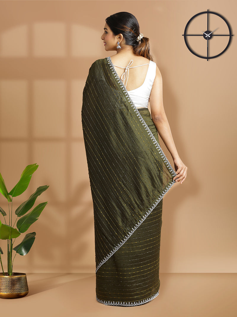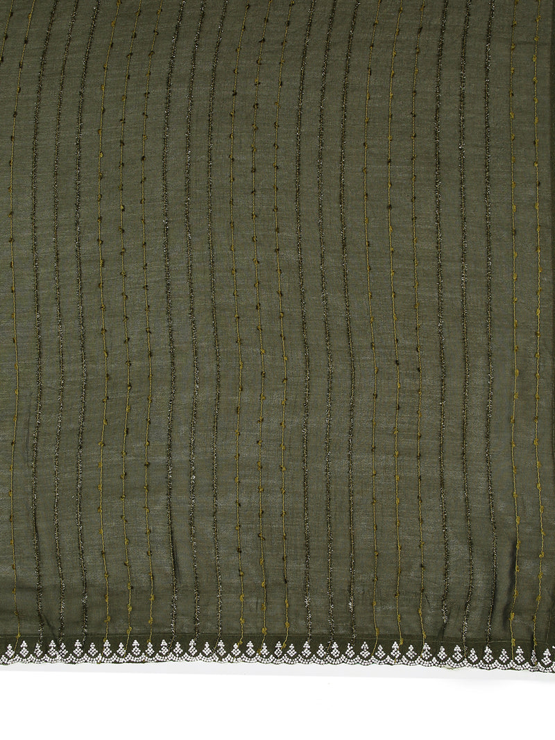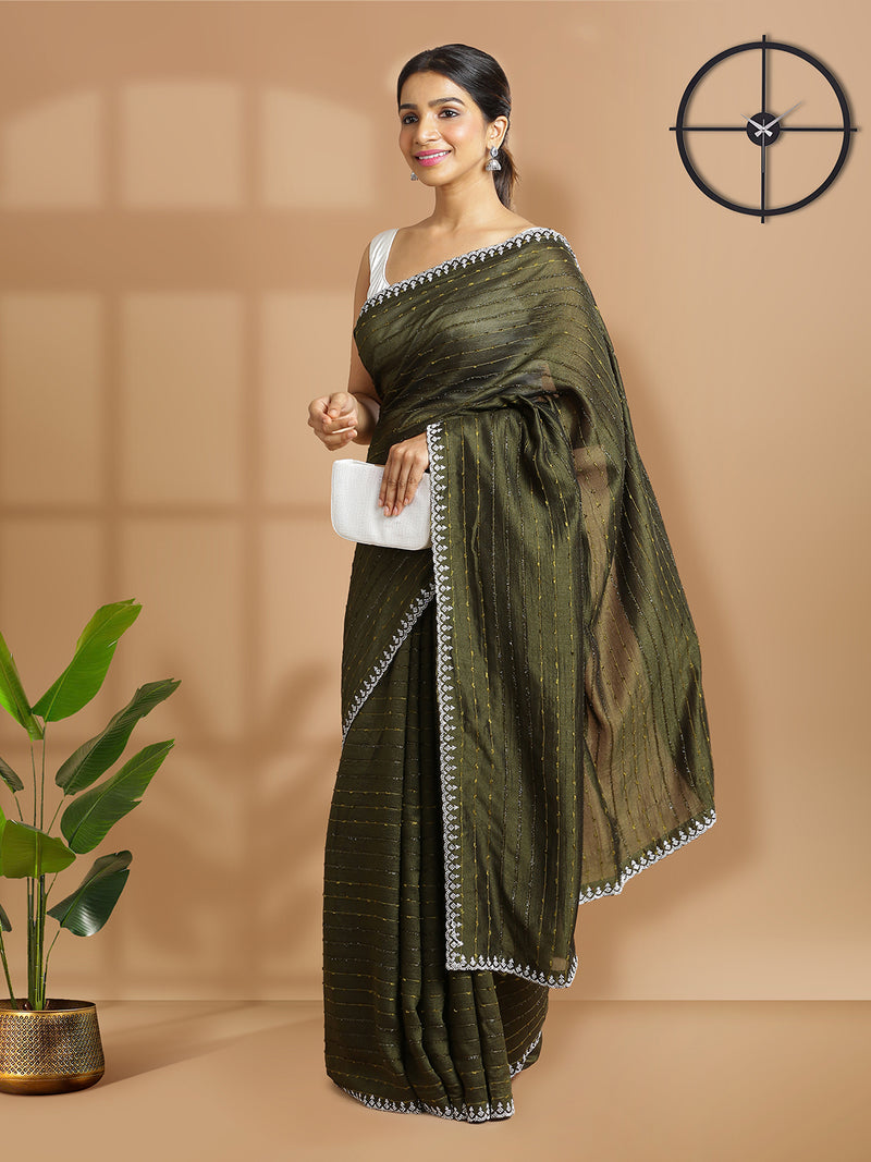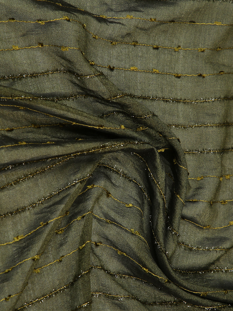 Mehandi Green Vijithra Silk Saree With Horizontal Thread Stripes Over Body