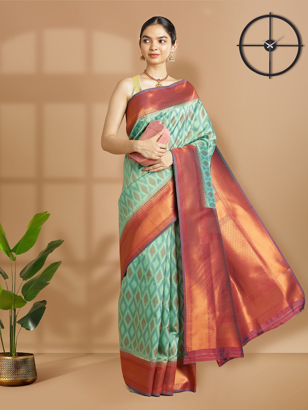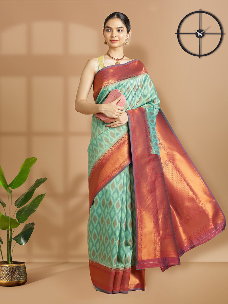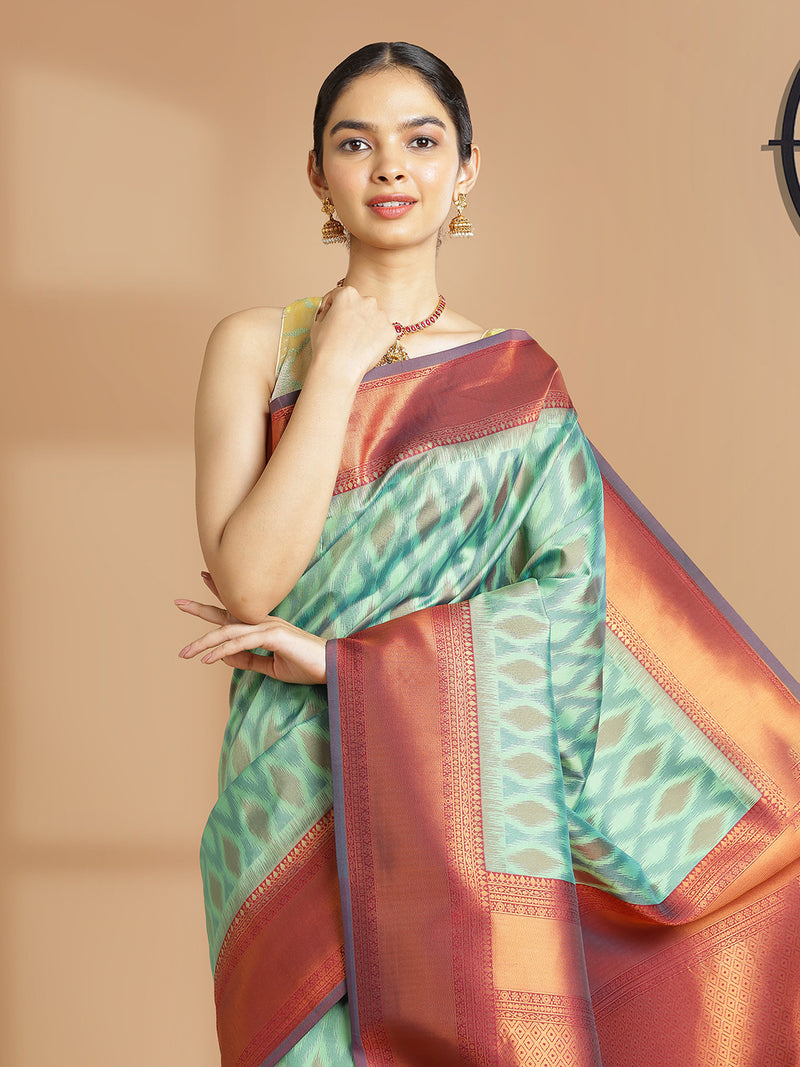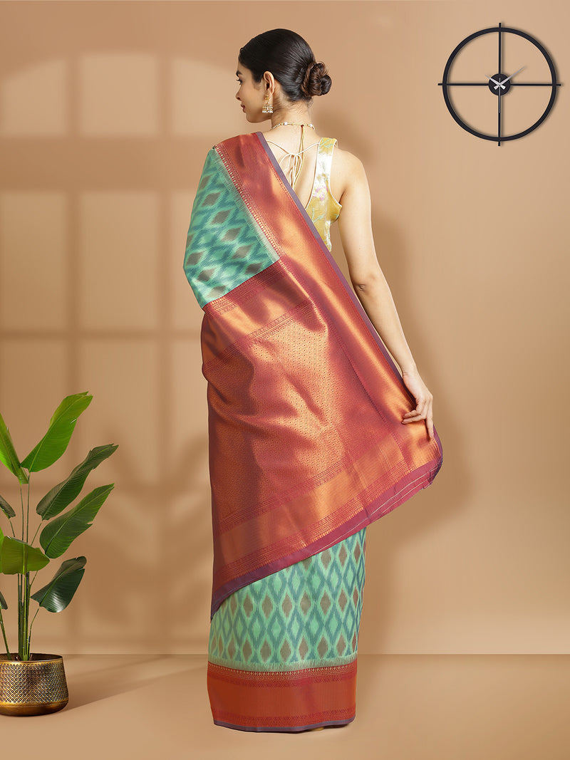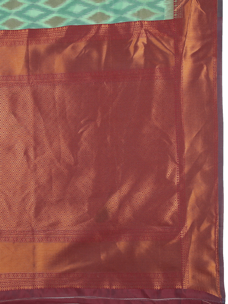 Mint Green Pochampalli Designed Art Silk Saree With Maroon Border