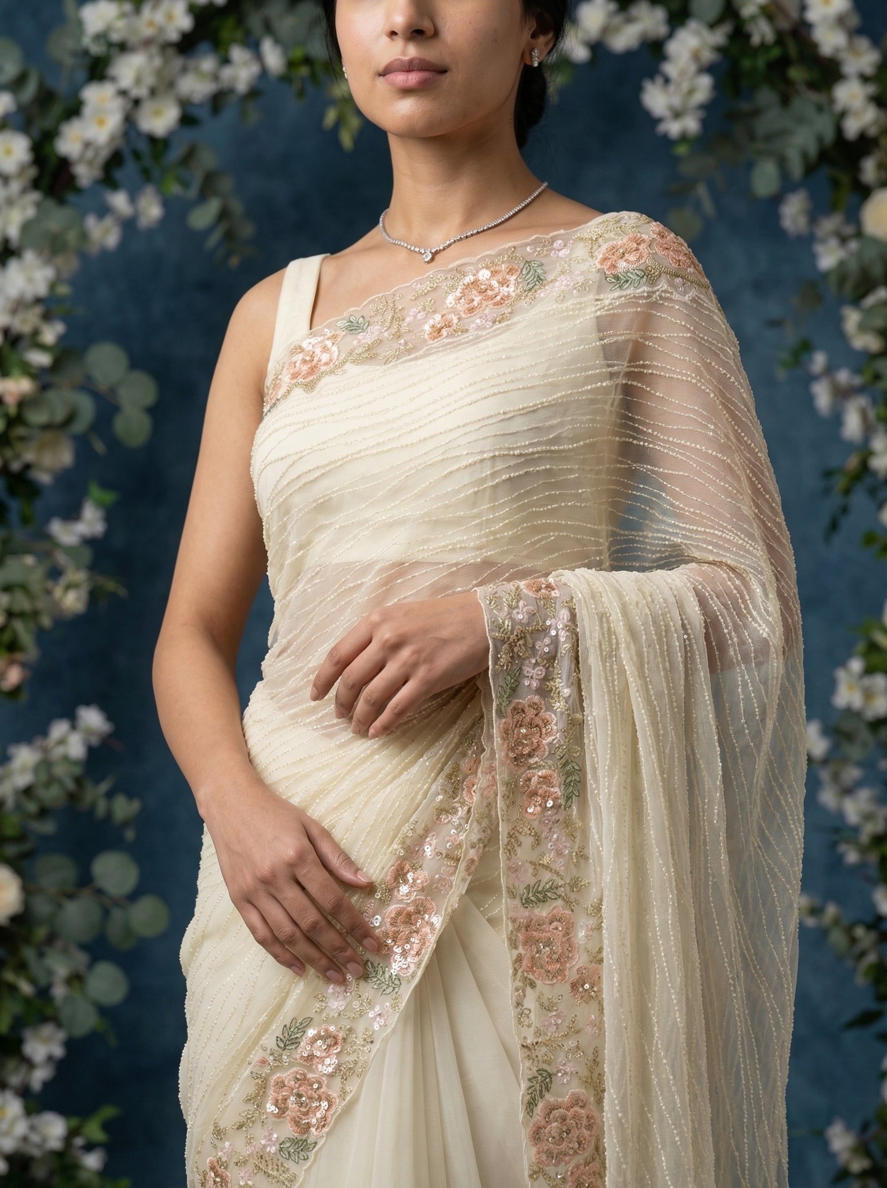 * Handle gently, especially for net, chiffon, organza, silk and embellished sarees