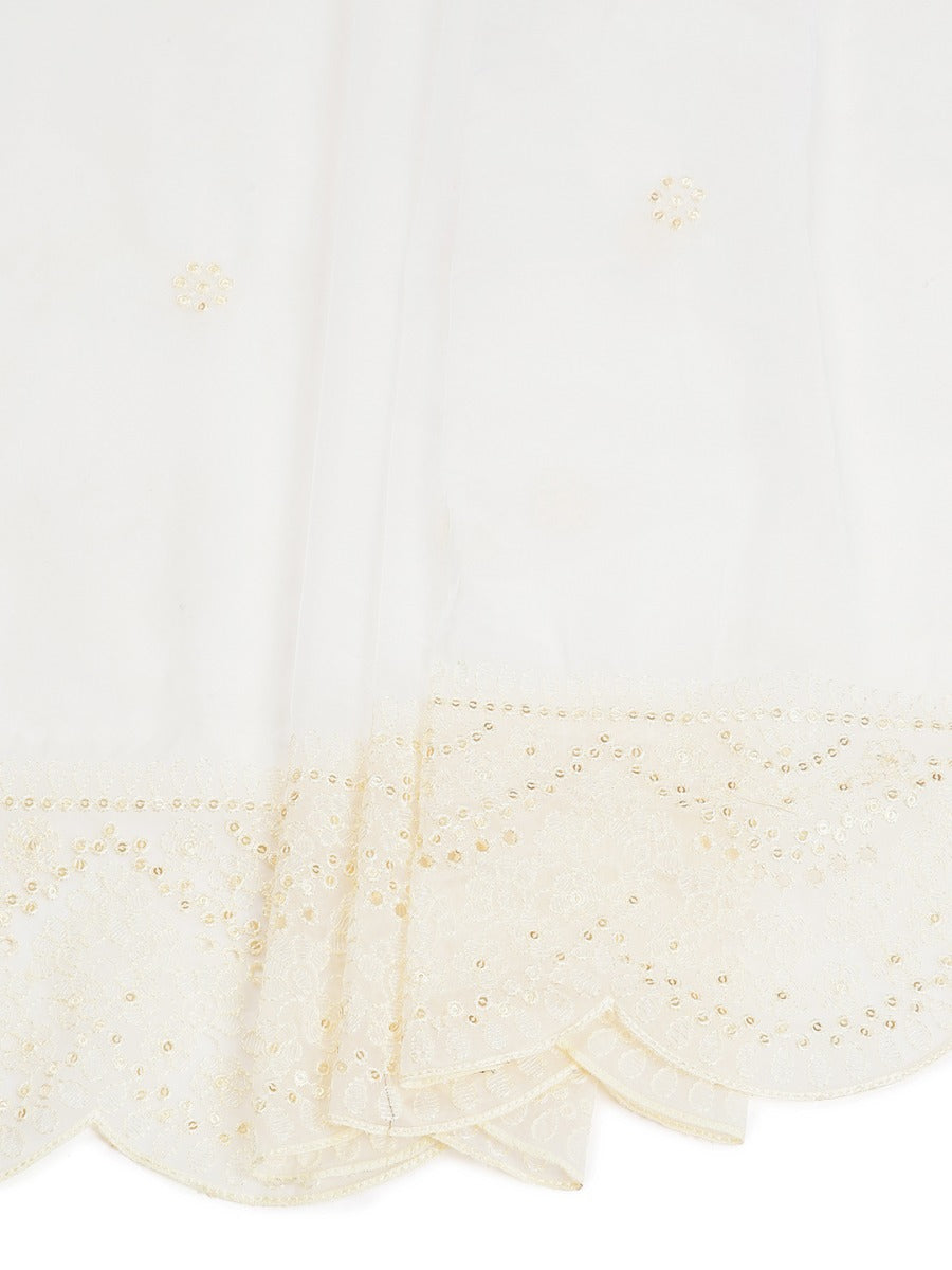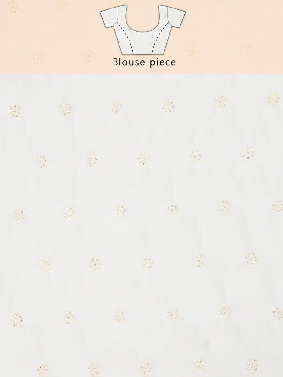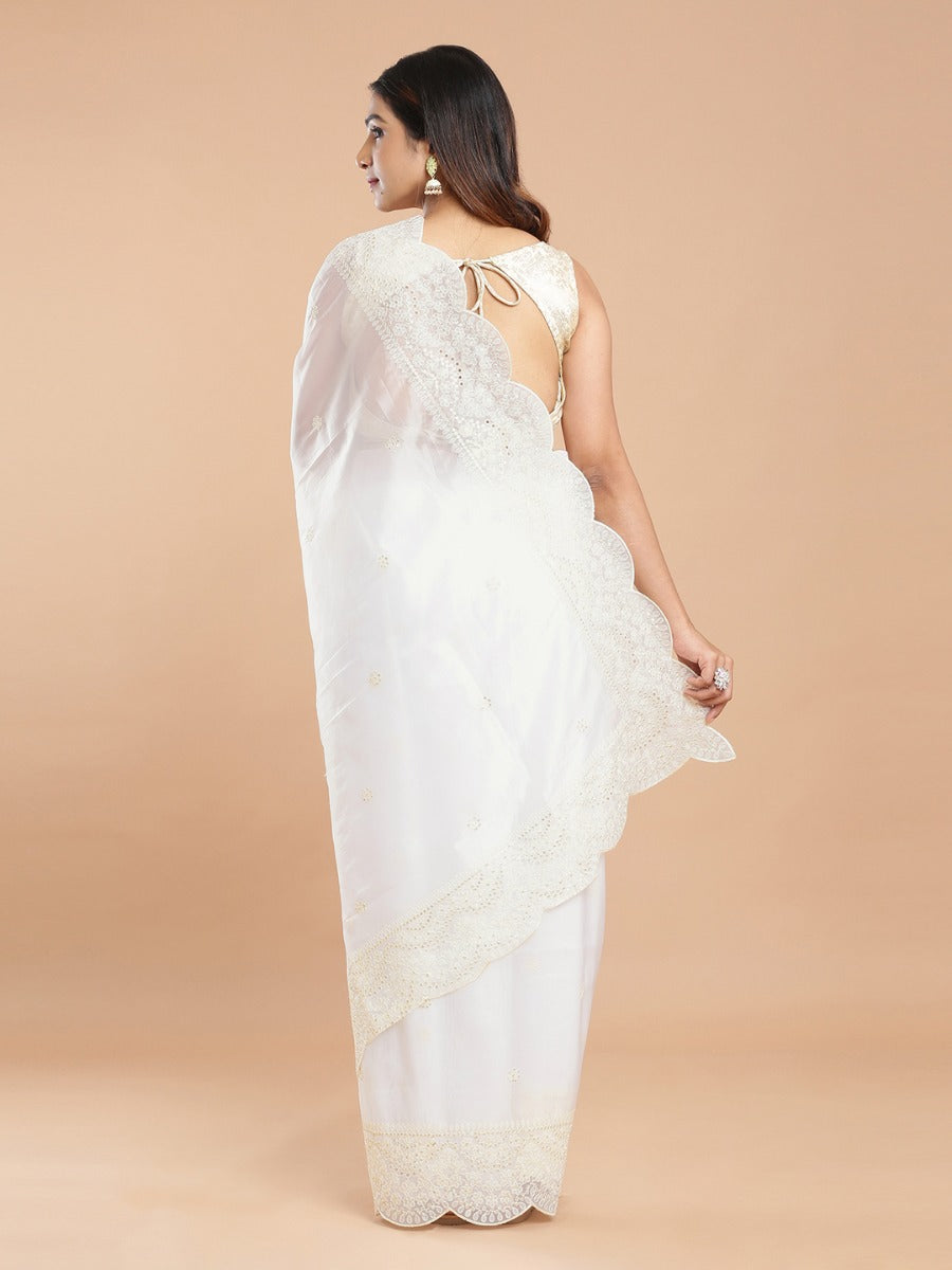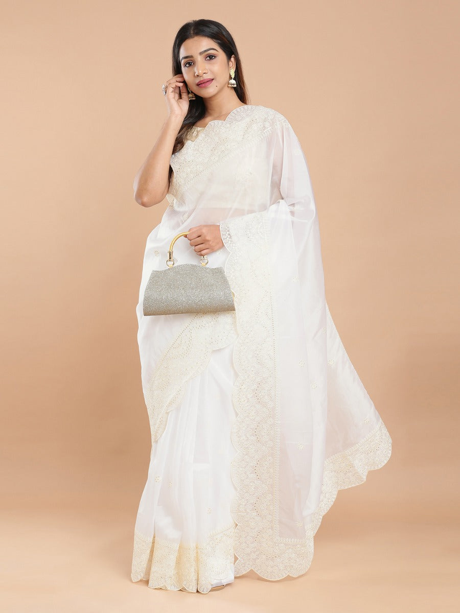 Off White Organza Saree With Floral Embroidery All Over Design