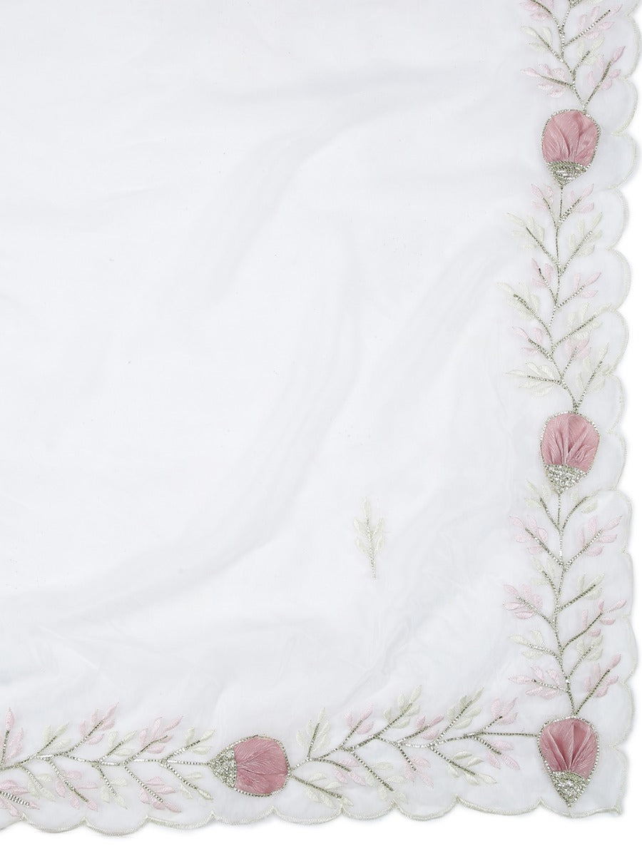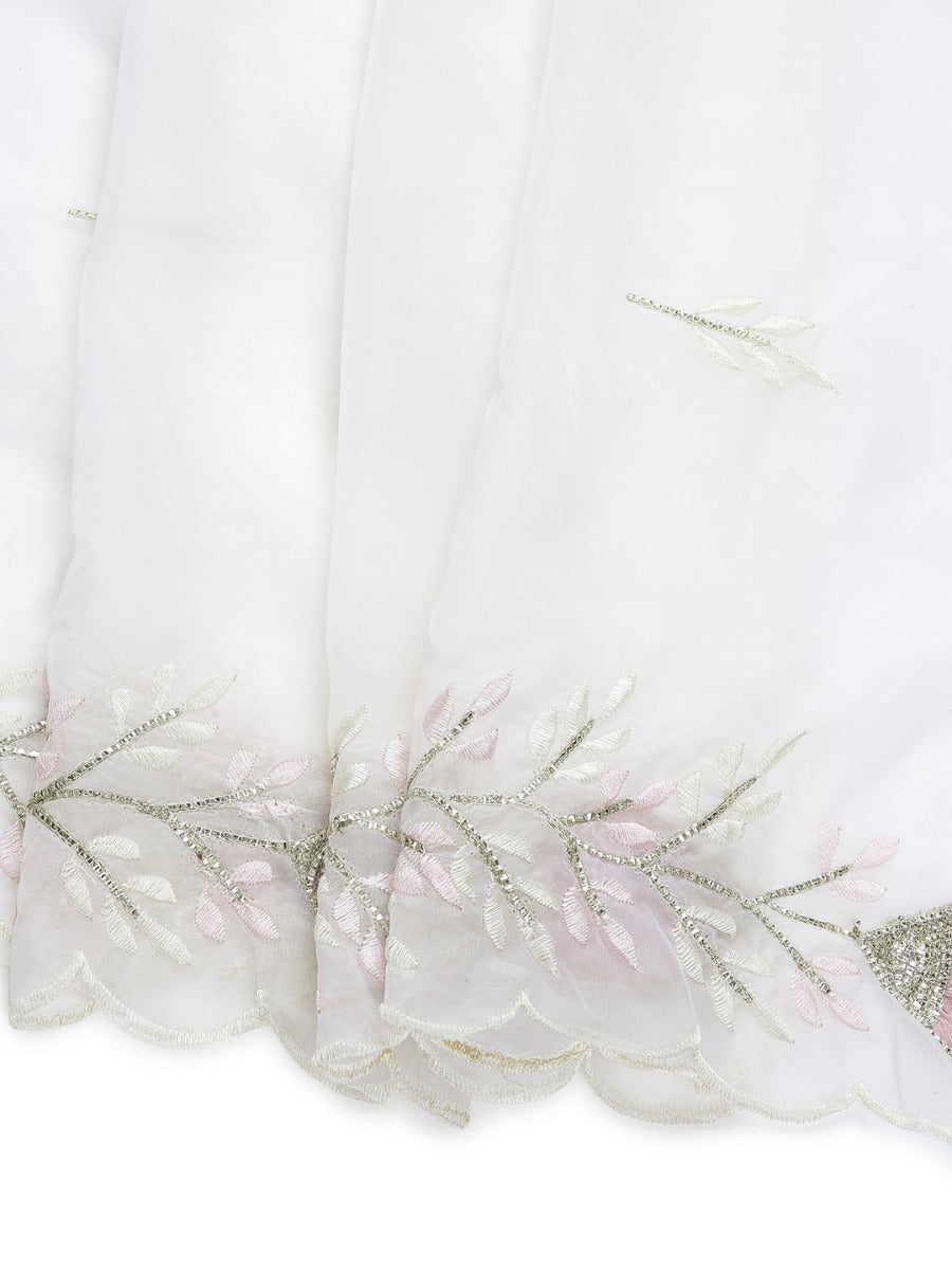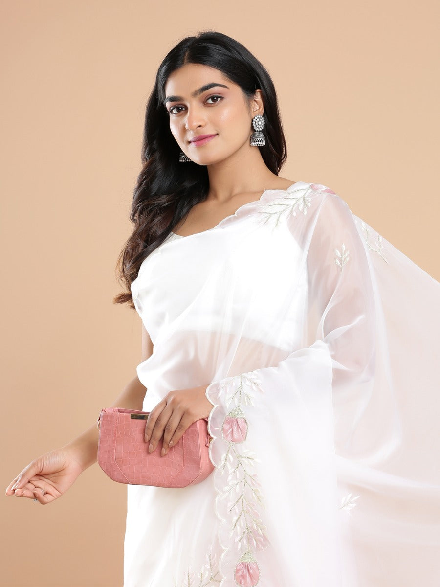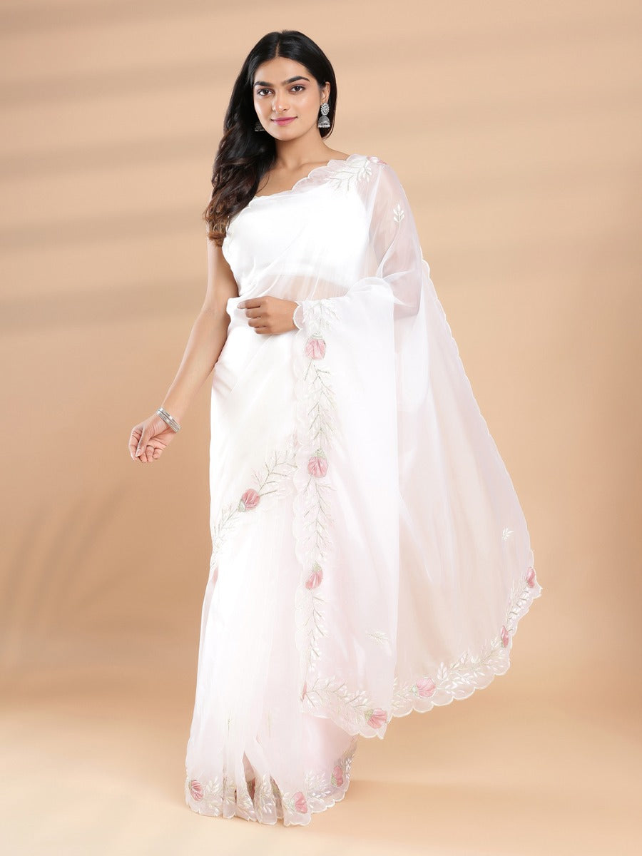 Off White Soft Organza Saree With Embroidery On Scalloped Border