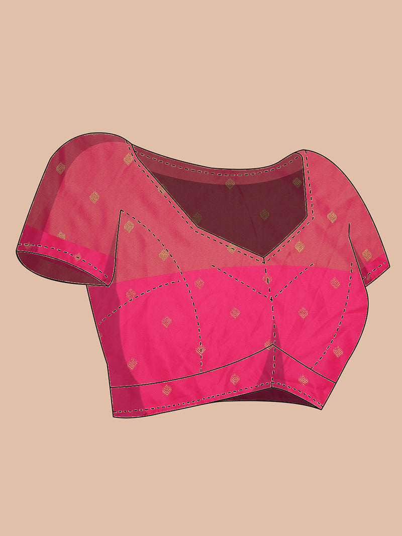 The blouse worn by the model might be for modelling purpose only. Check the image of the blouse piece to understand how the actual blouse piece looks like.