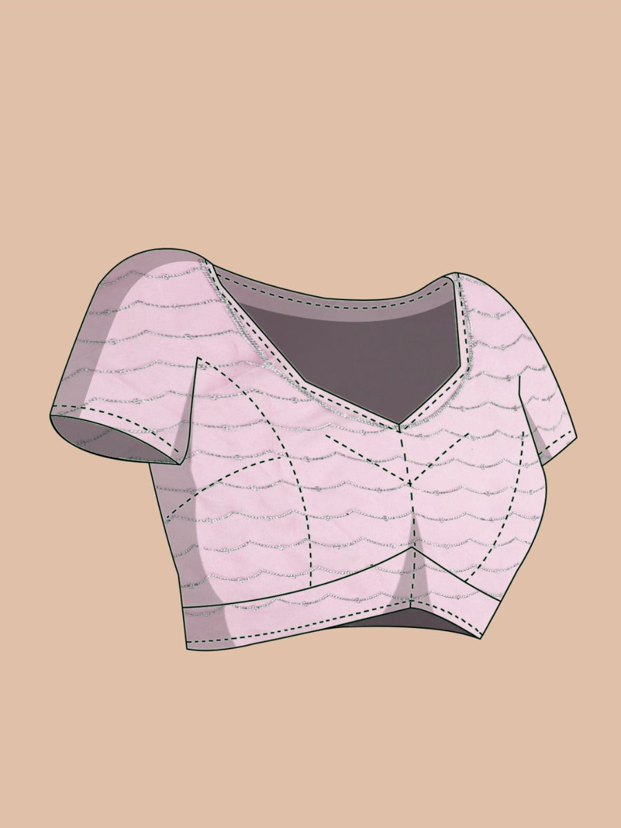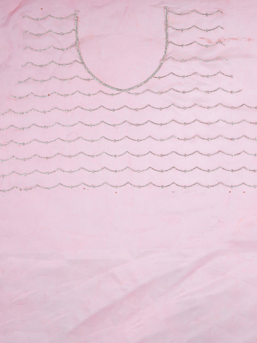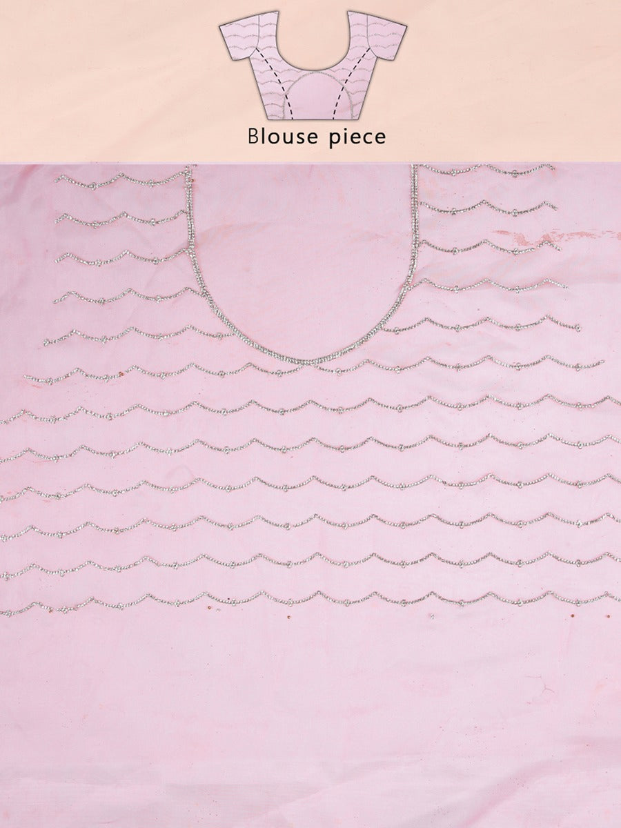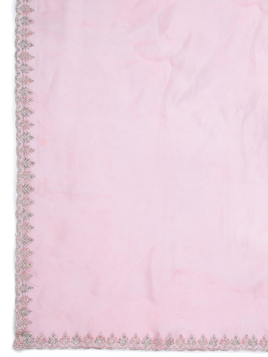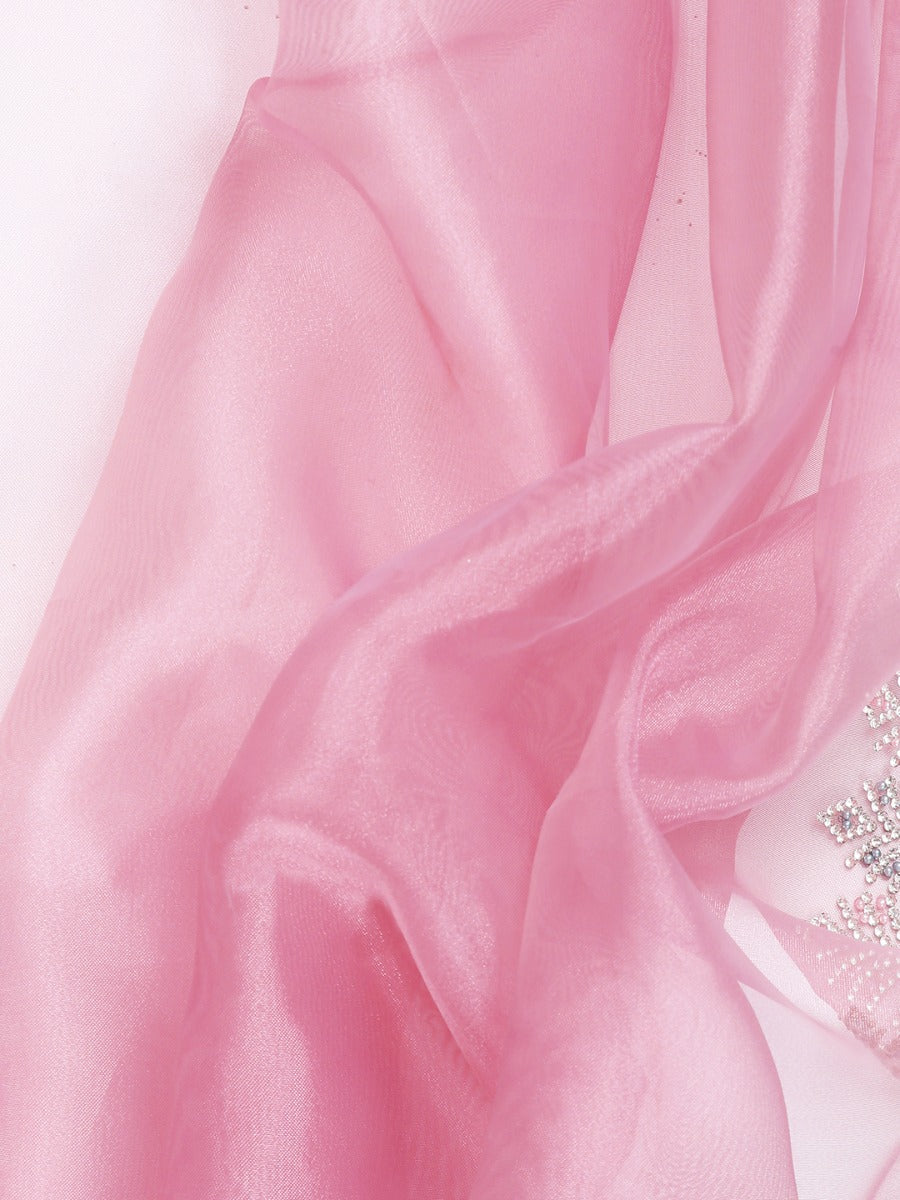 Onion Pink Color Organza Plain Saree With Stone Worked Scalloped Border & Blouse