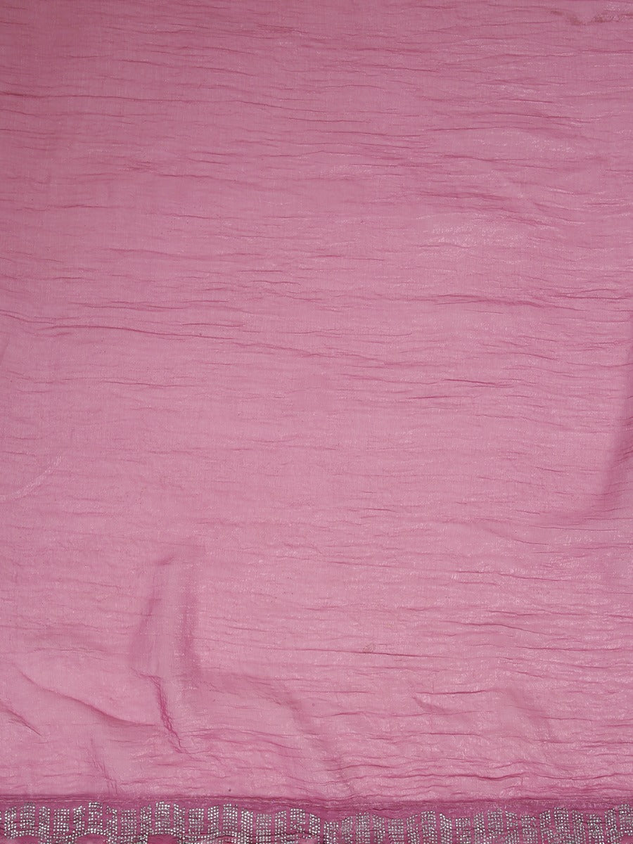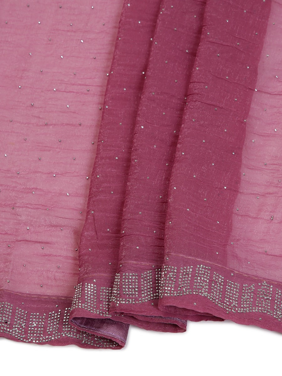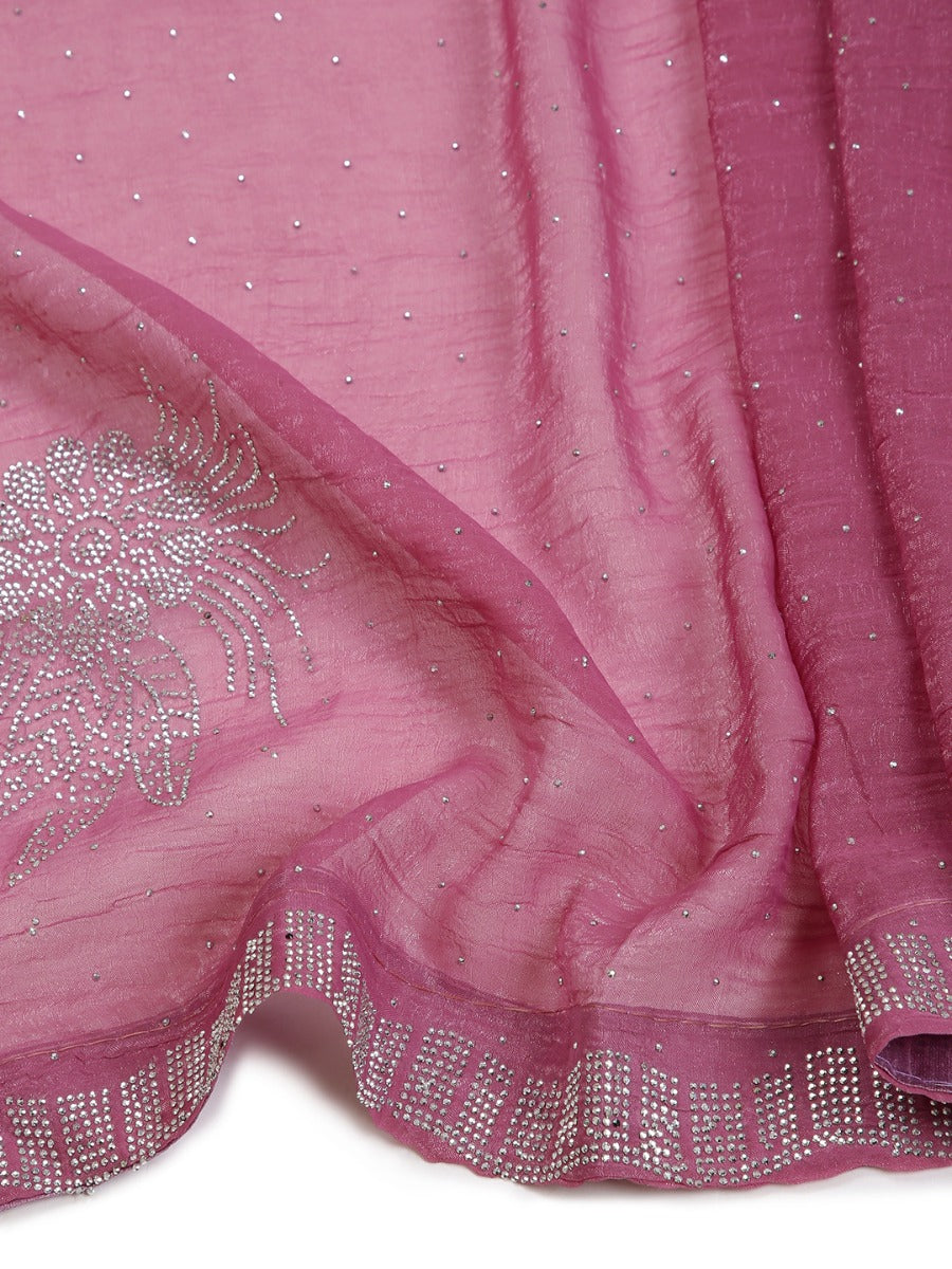 Onion Pink Color Shimmer Chiffon Mini Stone Work All Over Design