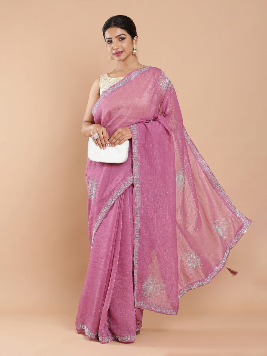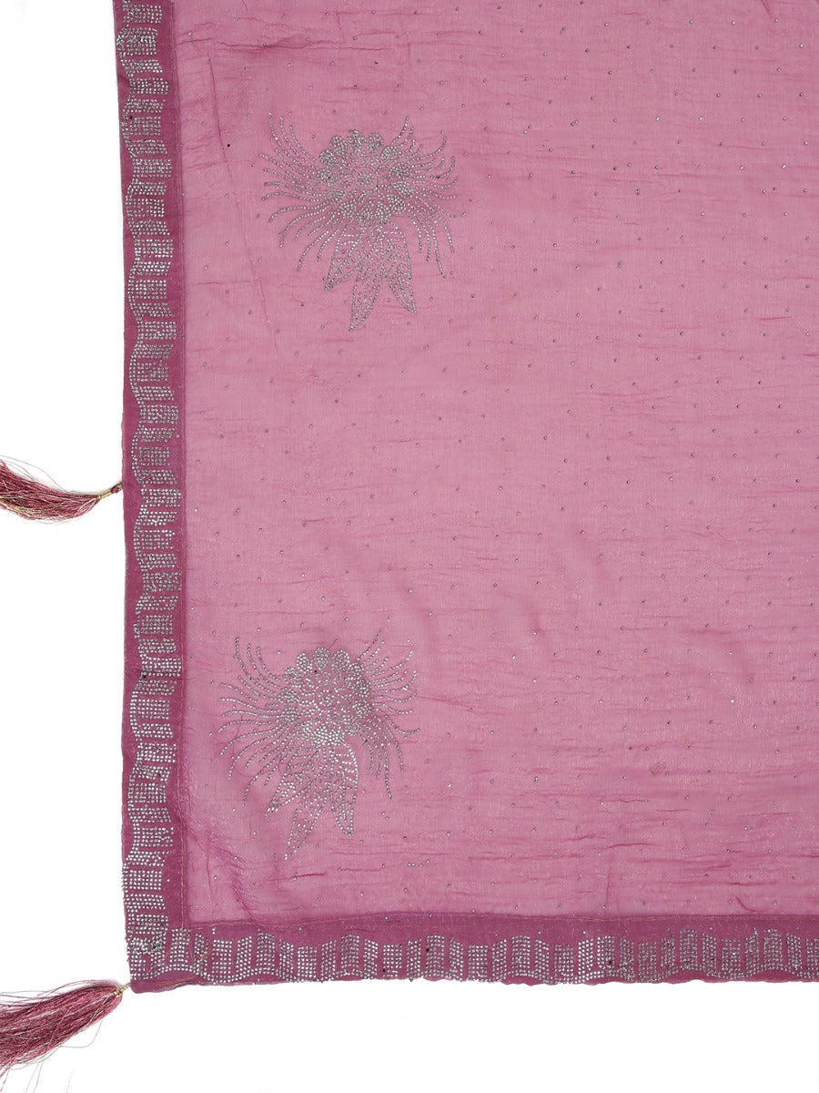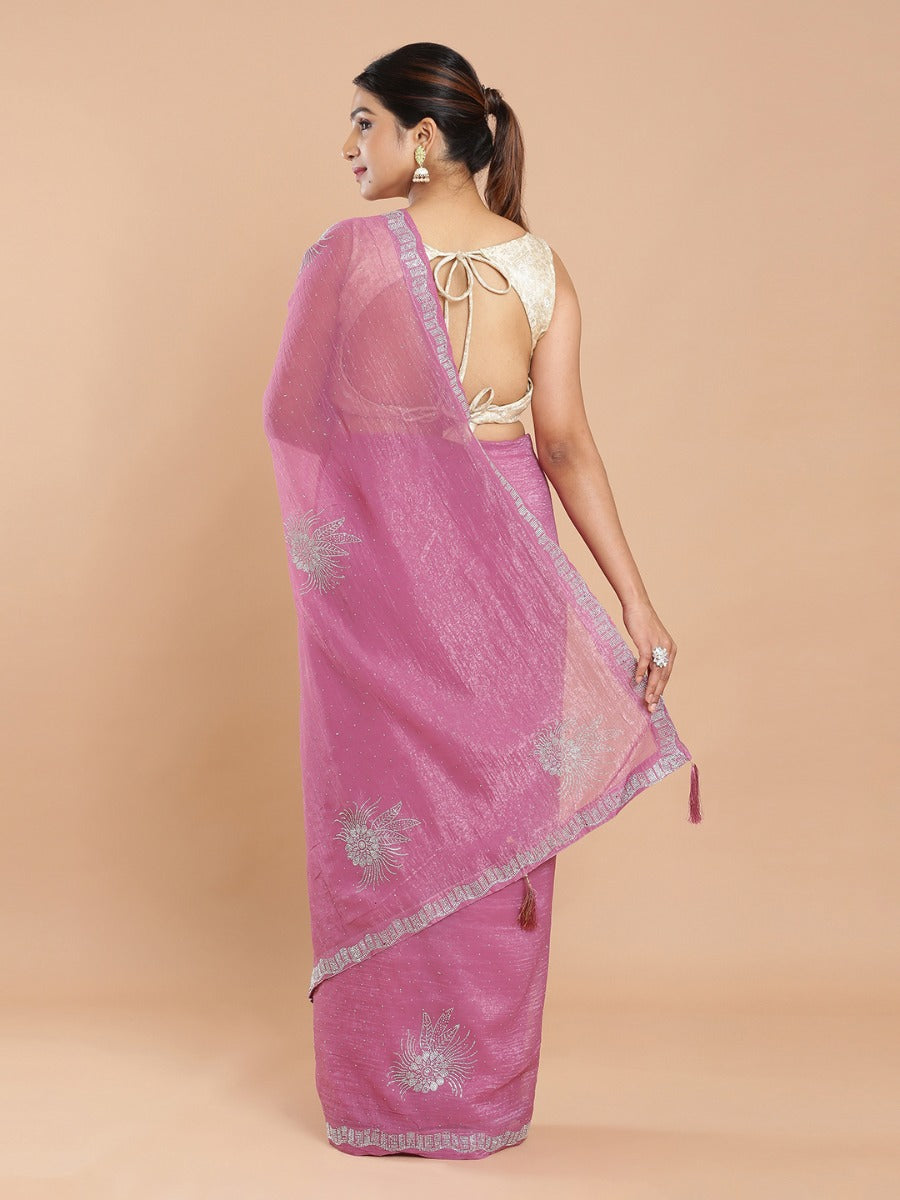 Onion Pink Color Shimmer Chiffon Mini Stone Work All Over Design