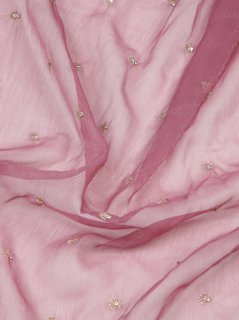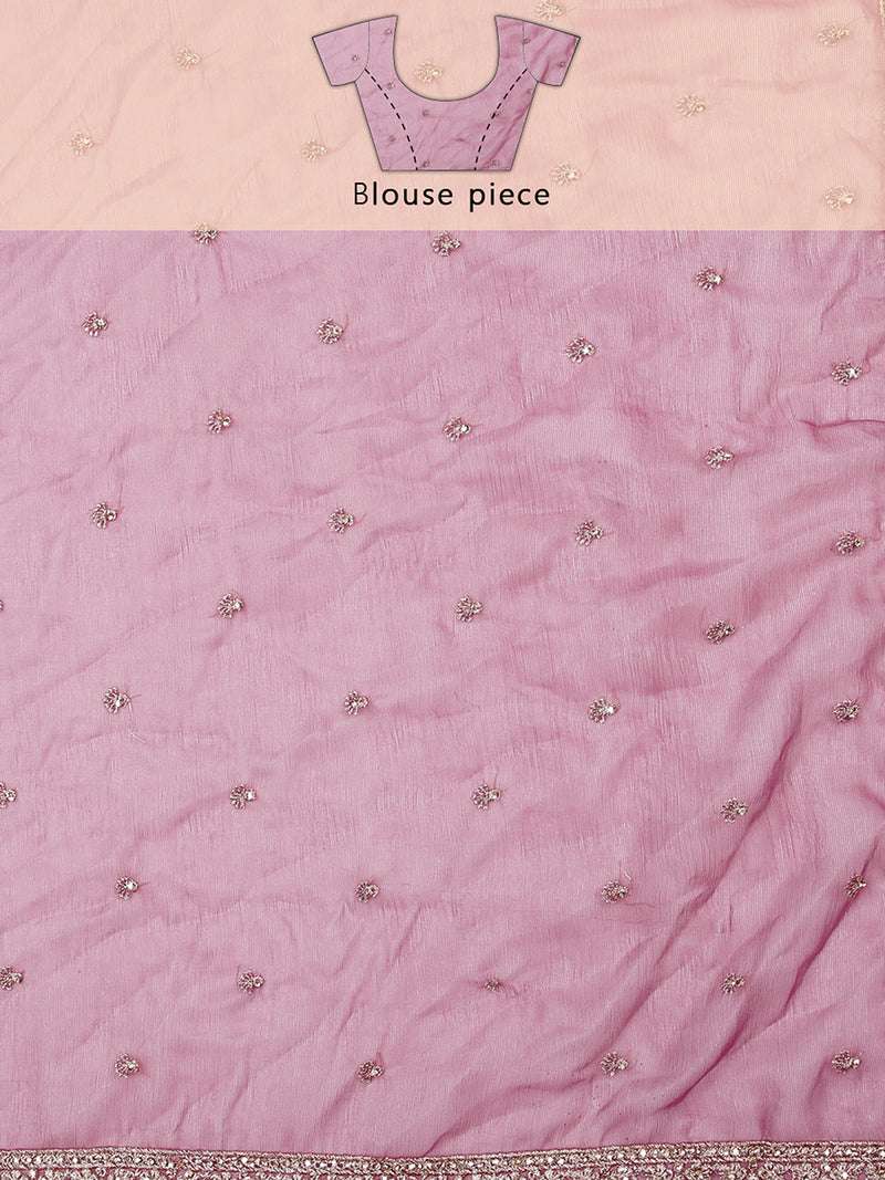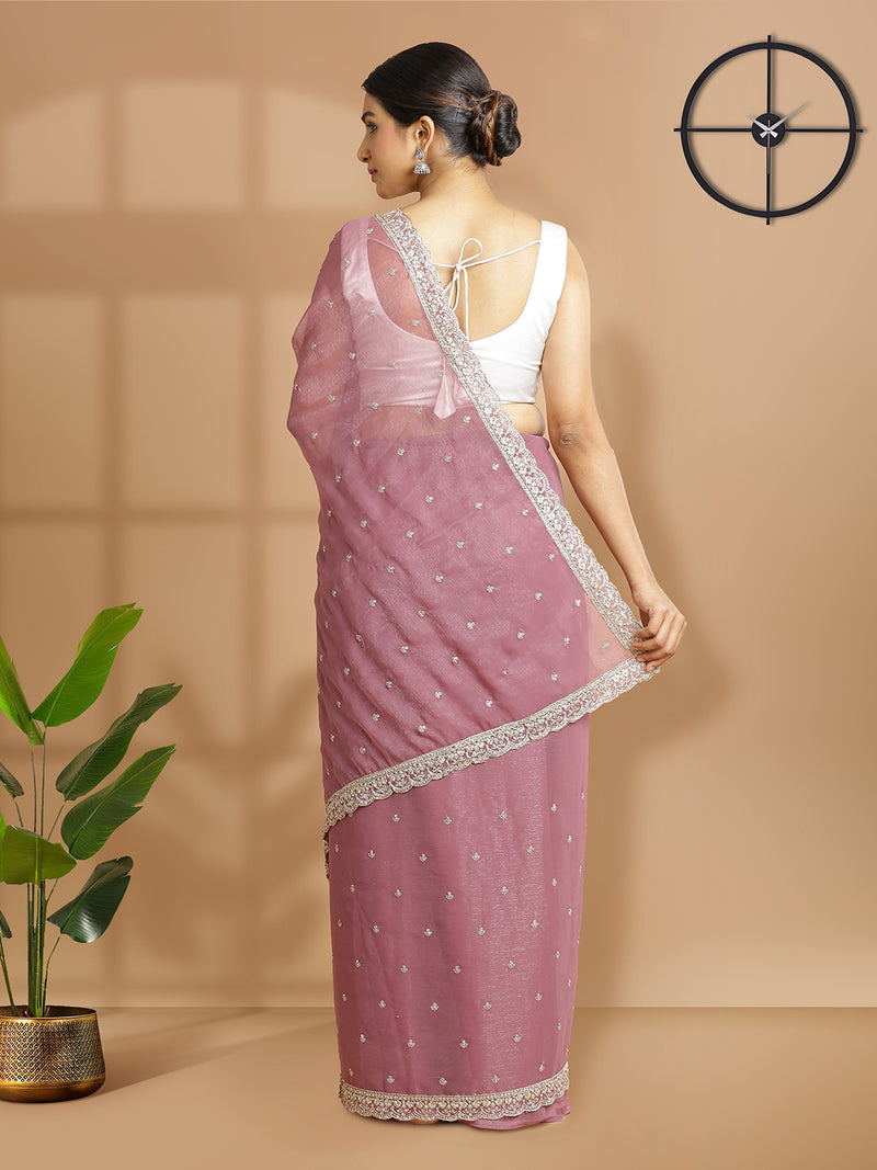 Onion Pink Georgette Tissue Saree With Golden Thread And Stones Over Body