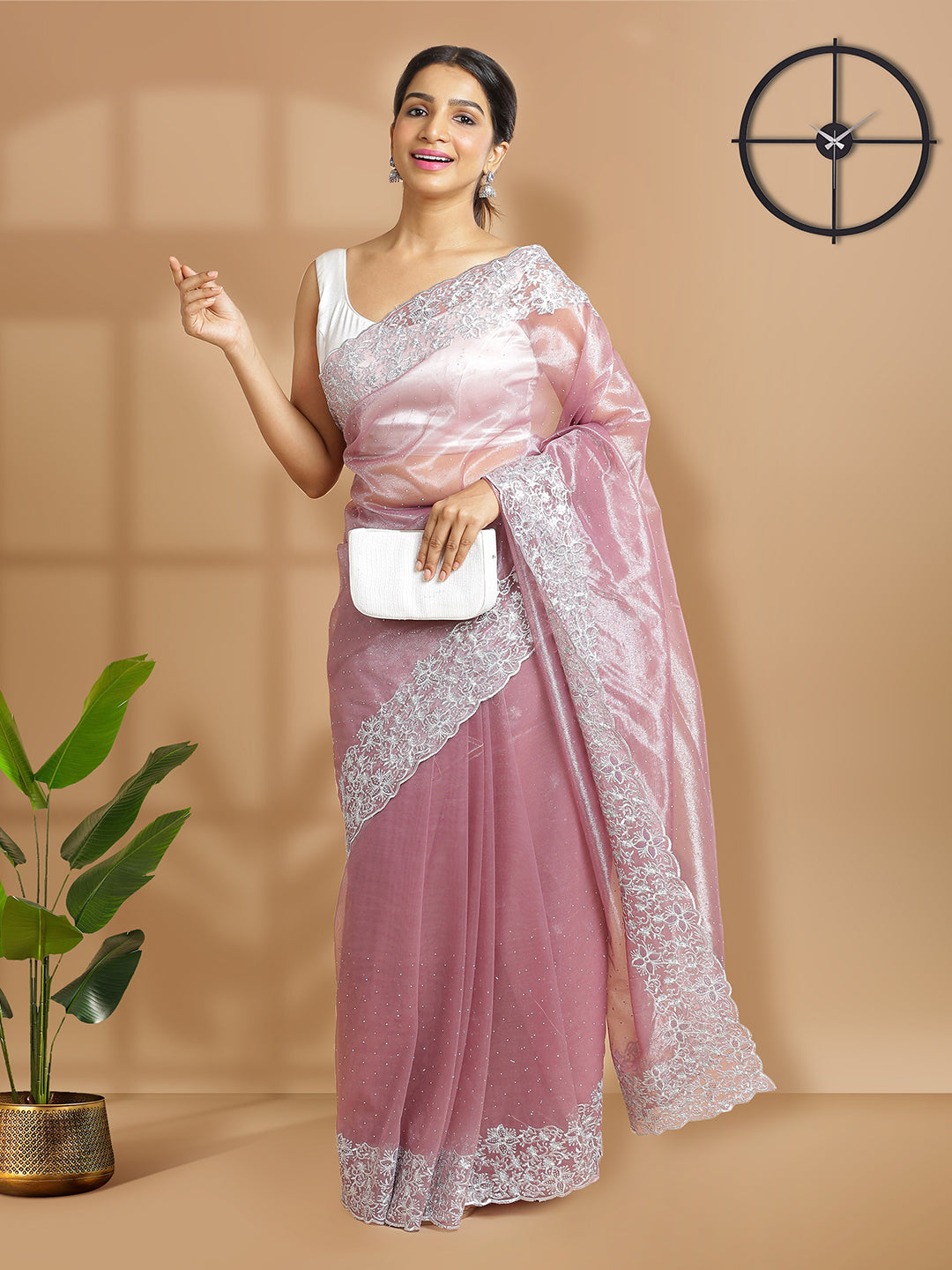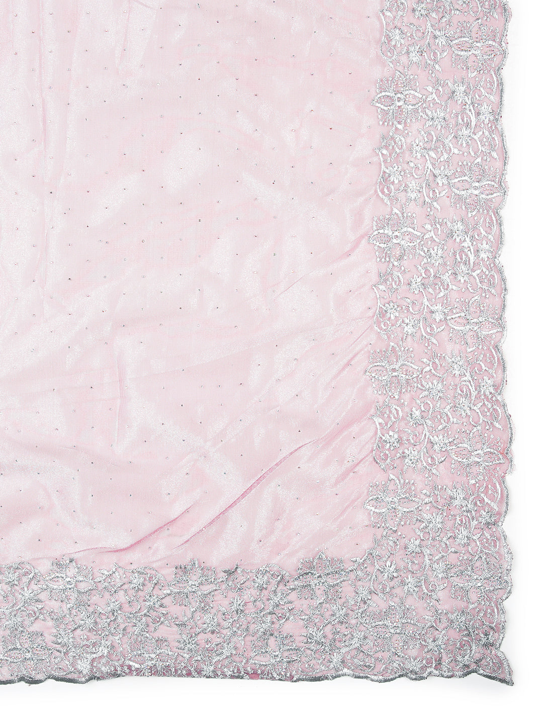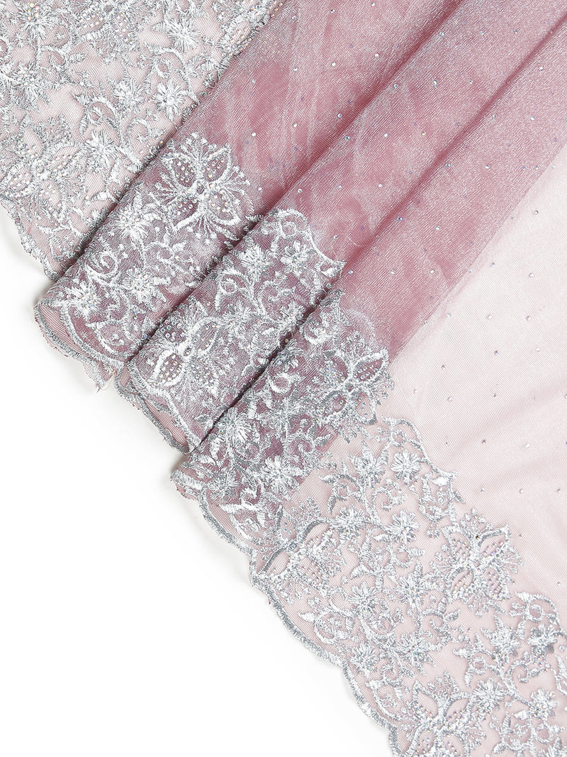 Onion Pink Net Tissue Saree With Multi Mini Stones Over Body