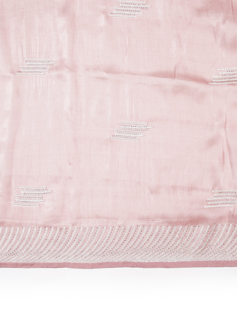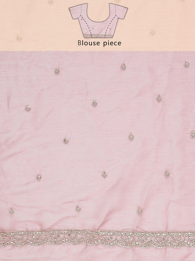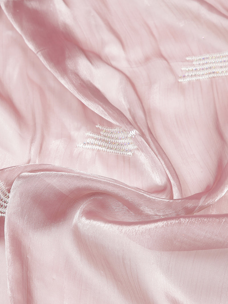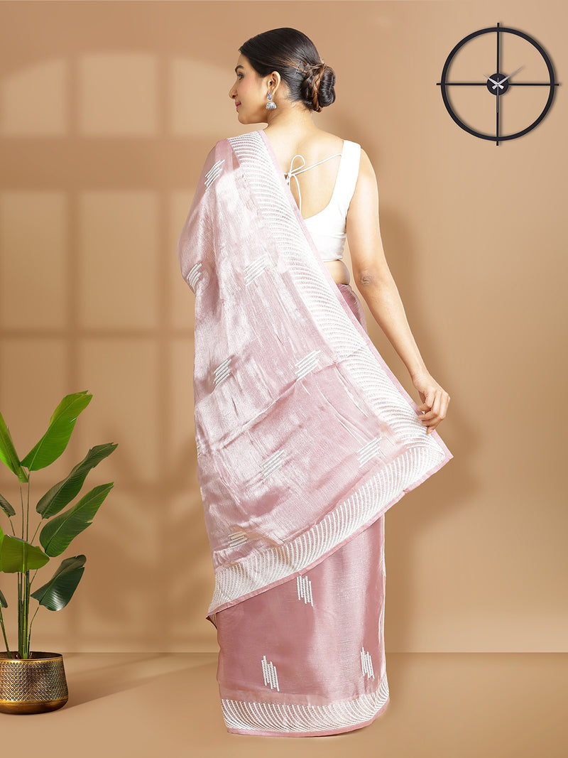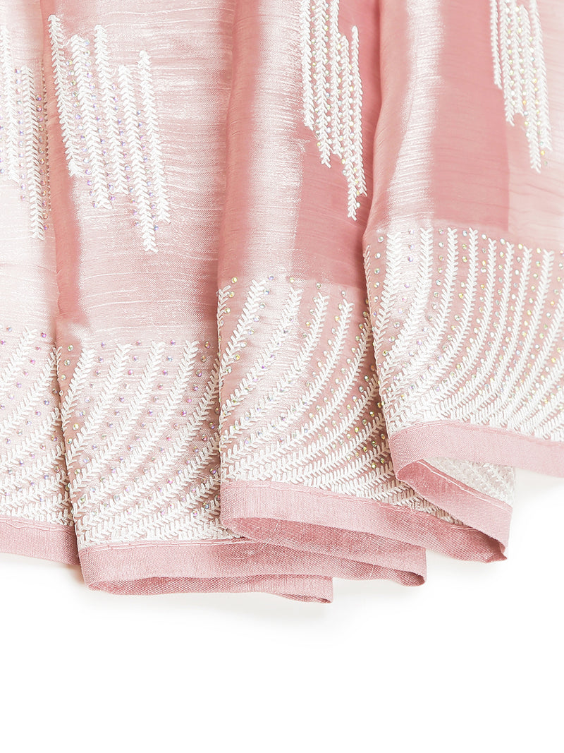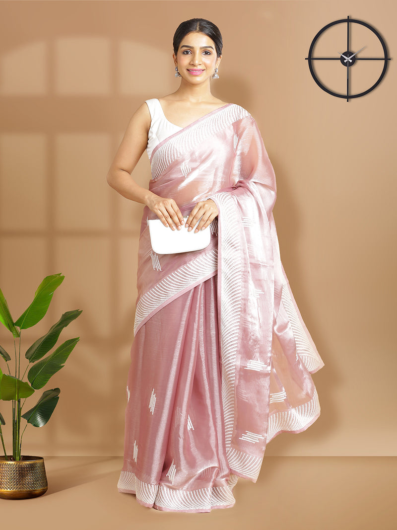 Onion Pink Organza Saree With Thread And Stone Work Over Body