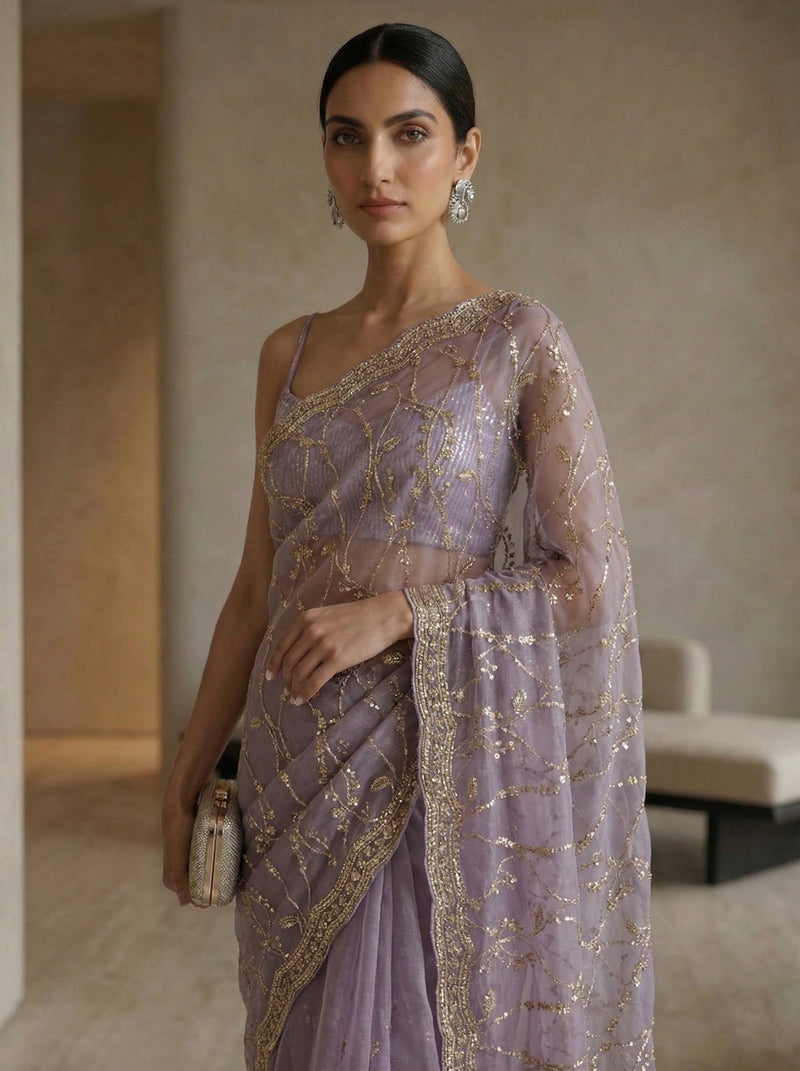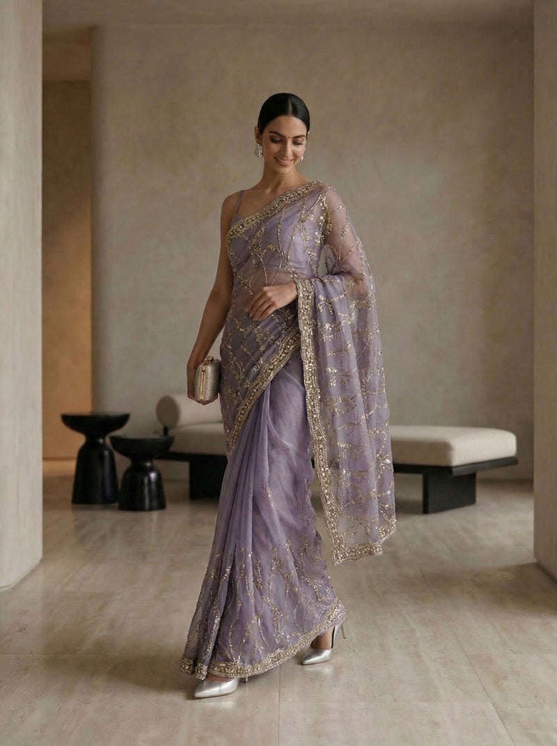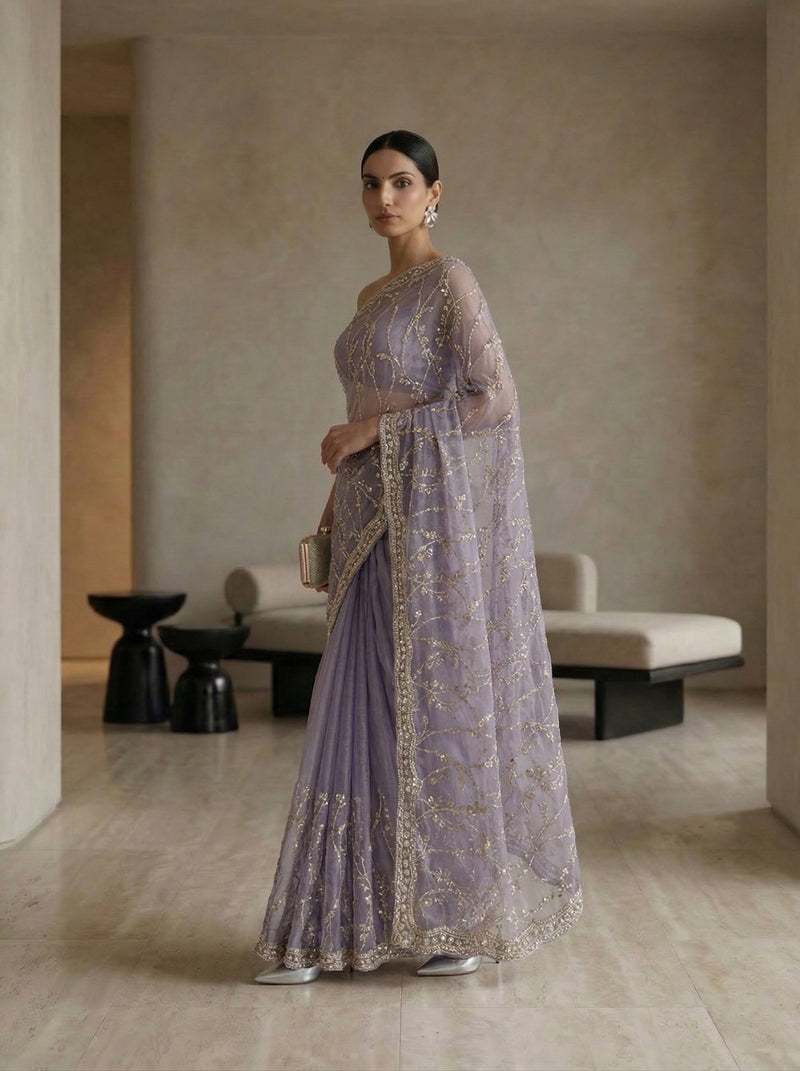 Organza Lavender Sequin Work Designer Saree