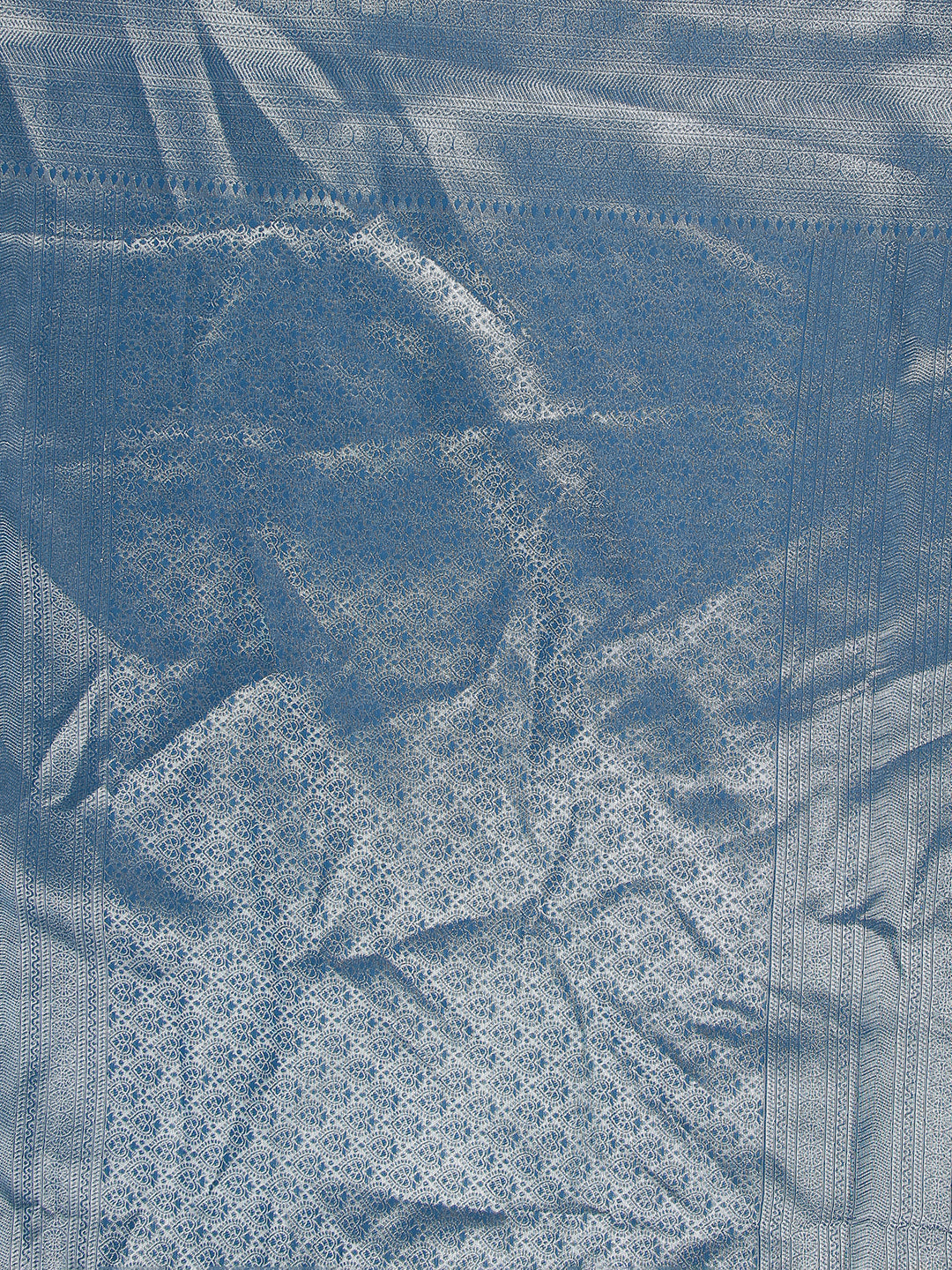 Pale Blue Color Art Silk Saree With Silver Temple Design Over Body