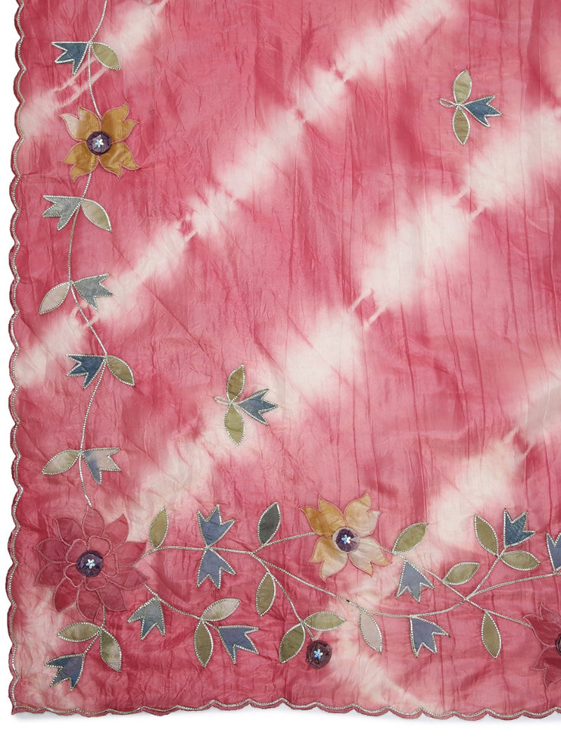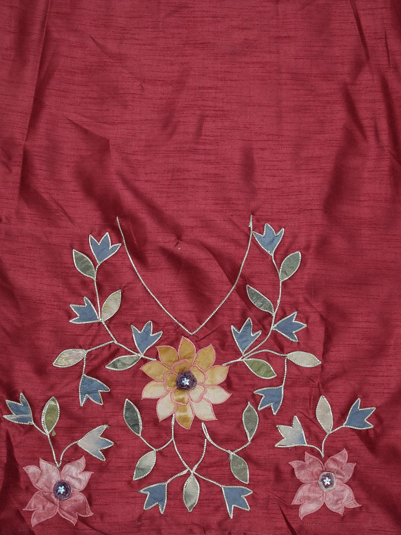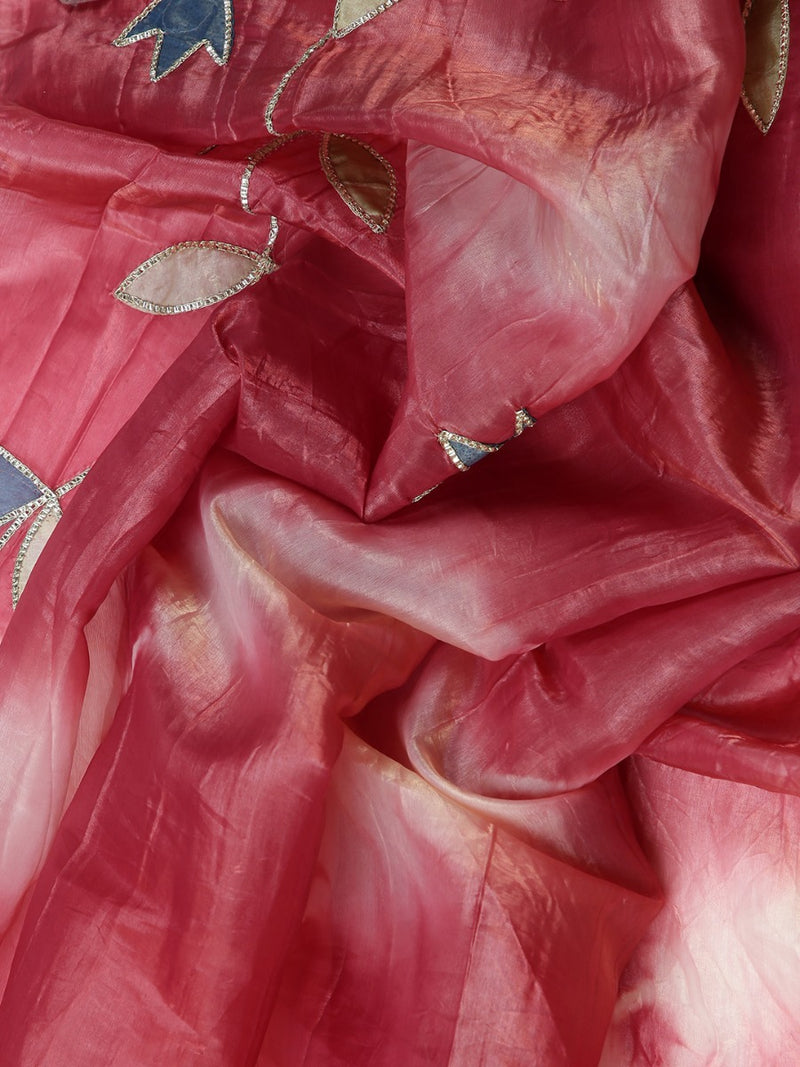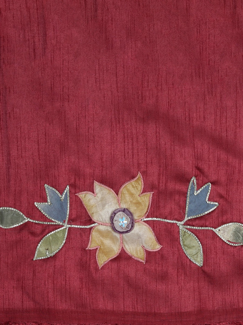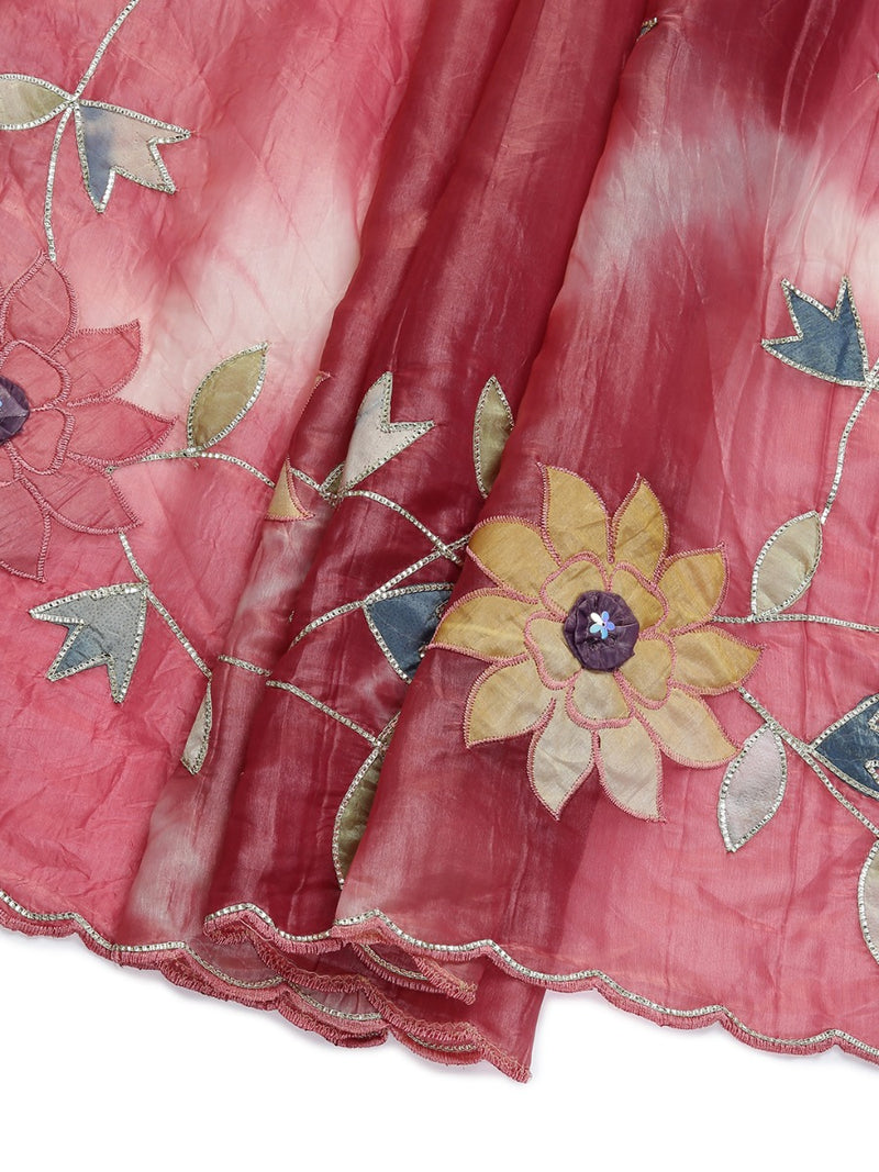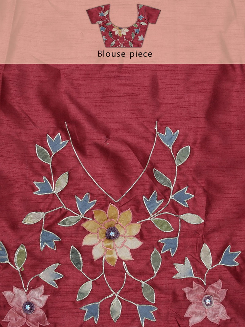 Pastel & Dark Brick Red Shade Soft Organza Saree With Floral Embroidery