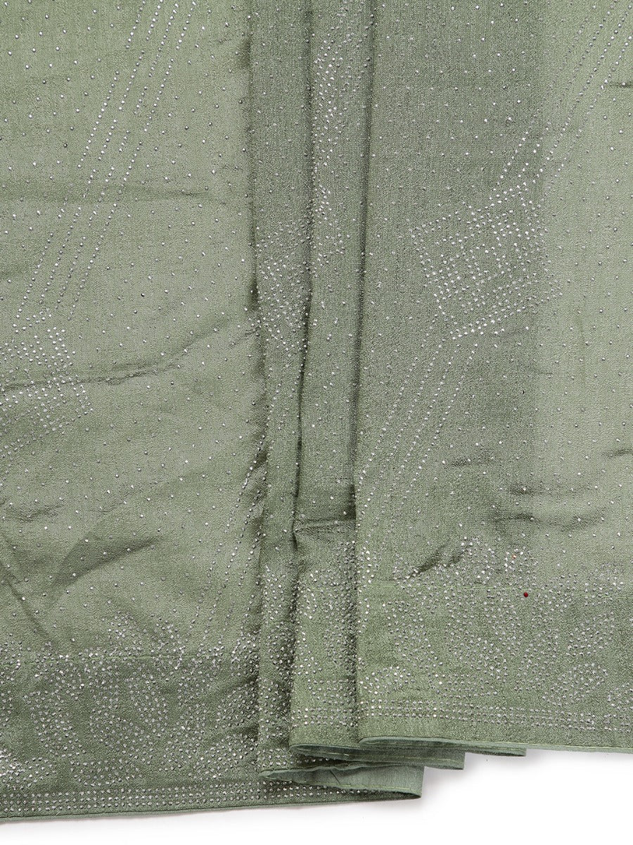 Pastel Green Vijithra Silk Saree With Mini Stone Work All Over Design