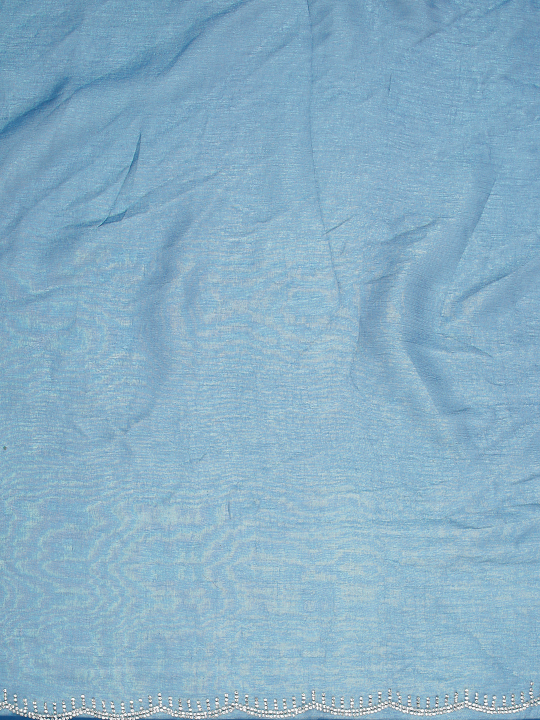 Peacock Blue Georgette Tissue Saree With Silver Mini Stones Over Body