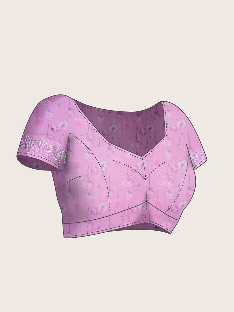 Blouse :Floral Print And Mini Stone Border