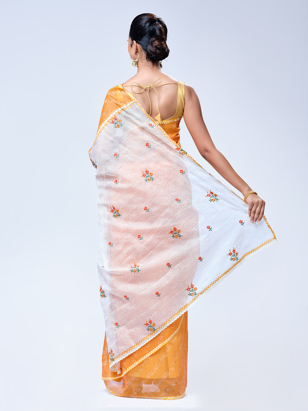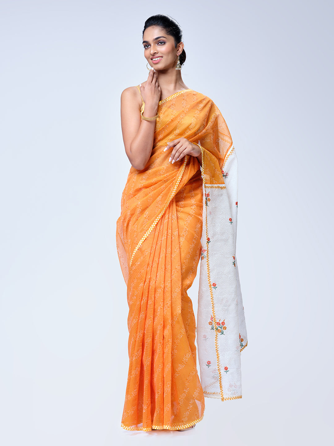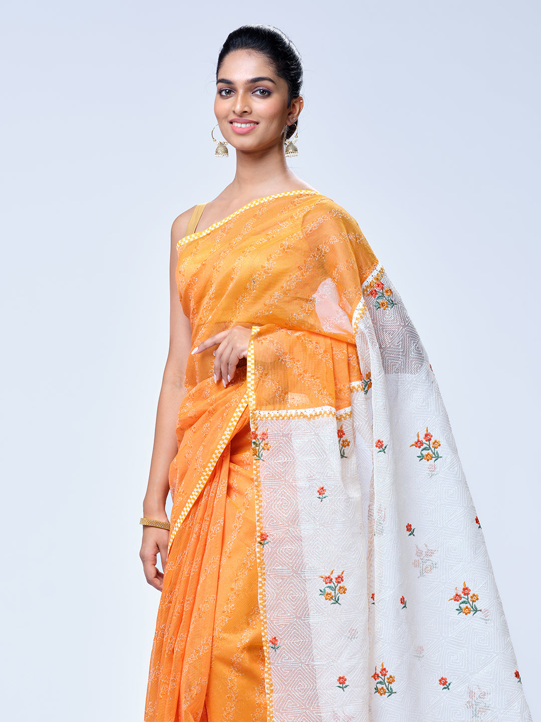 Orange Net Cotta Saree