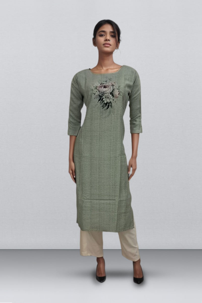 Pista Green Color Cotton Mix Kurti With Printed Design