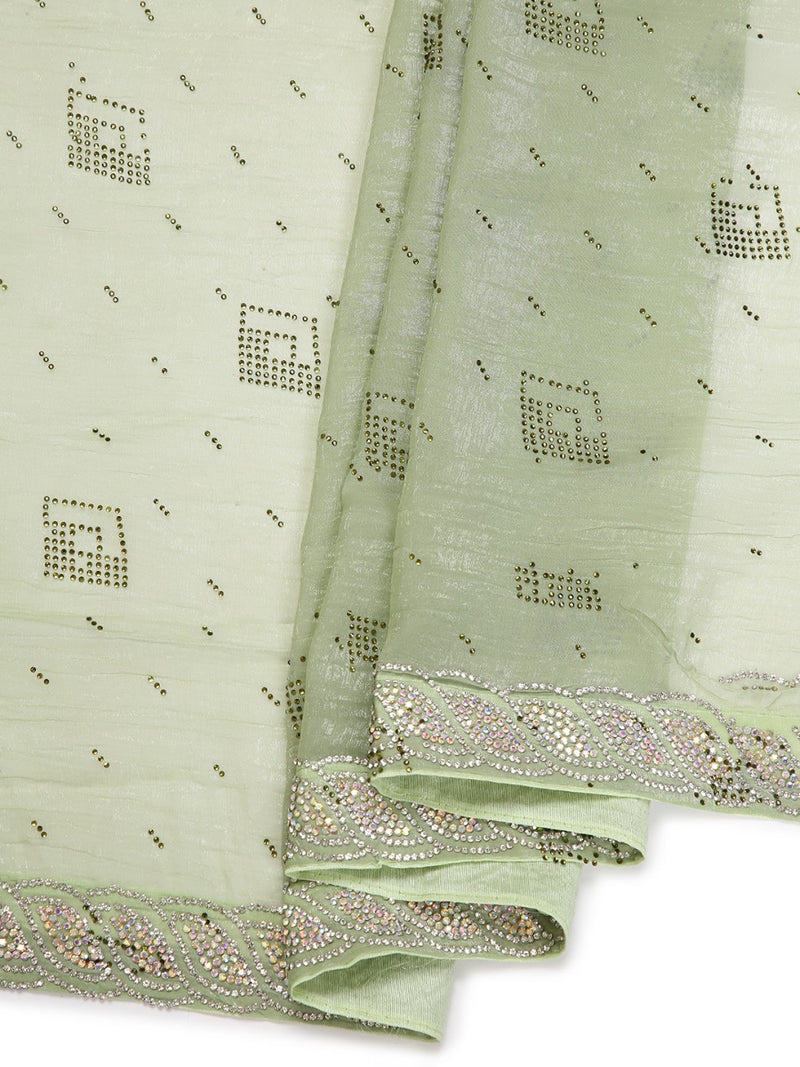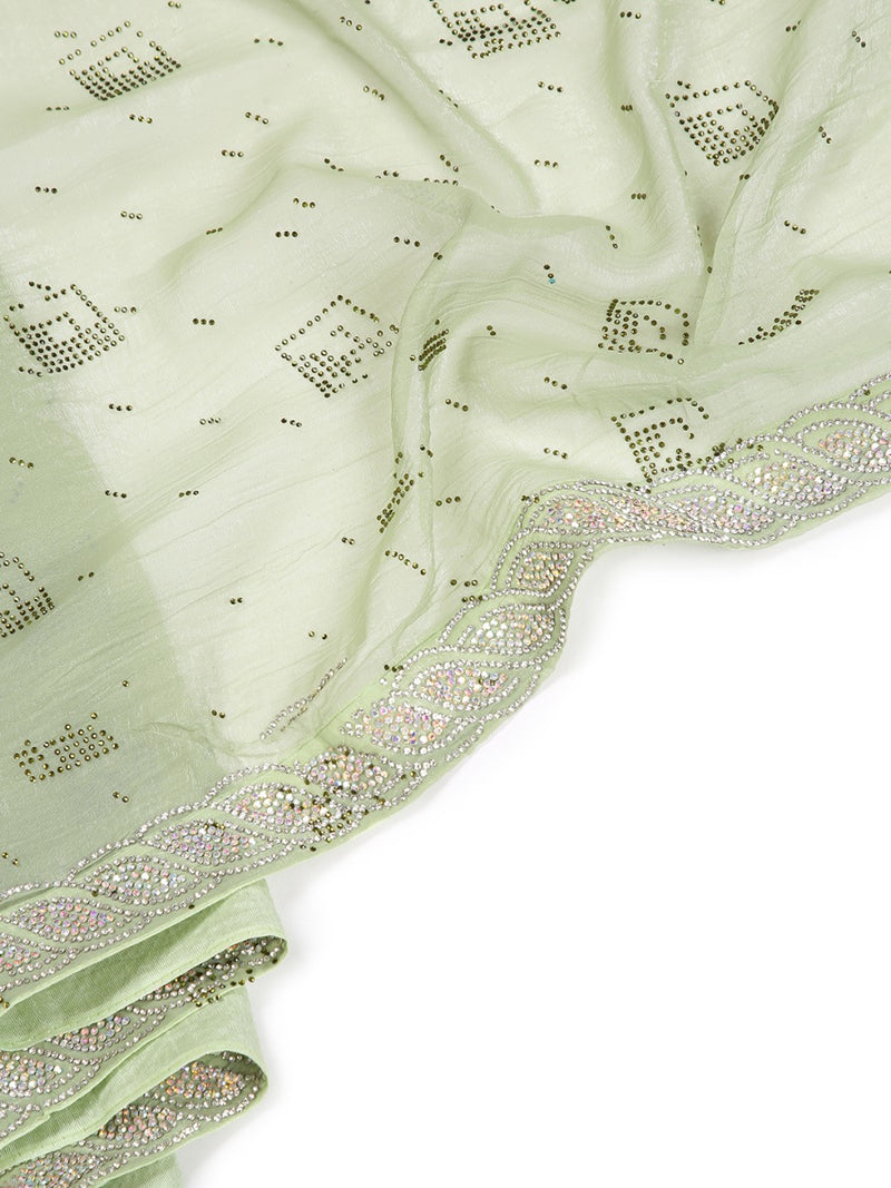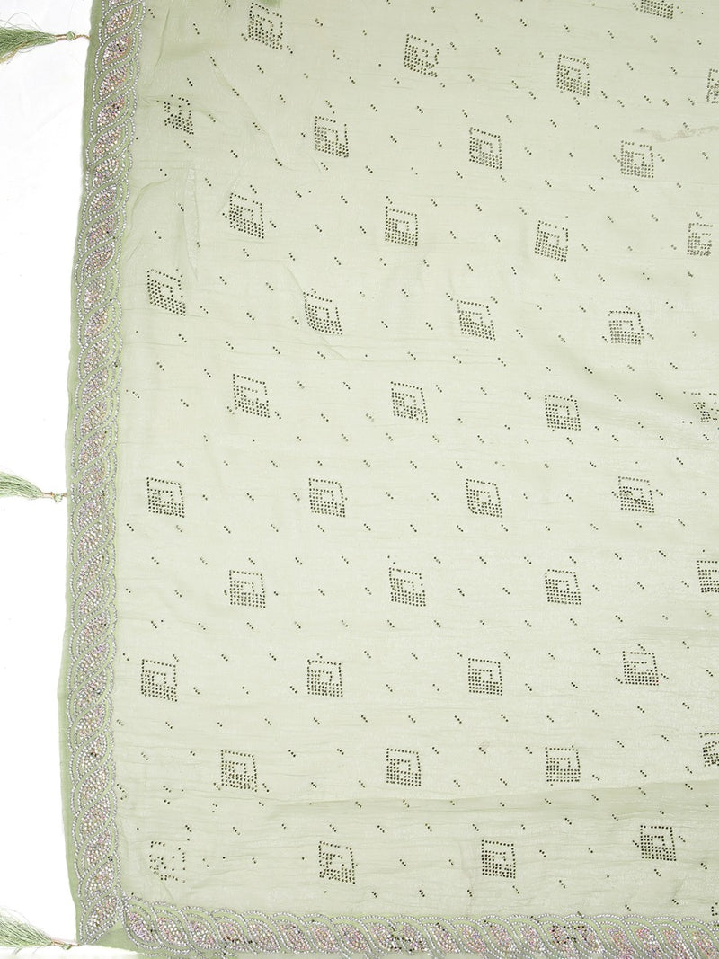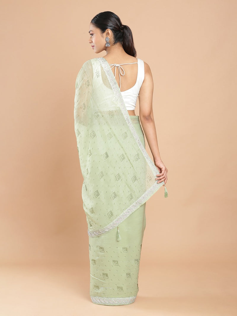 Pista Green Stone Worked Organza Saree