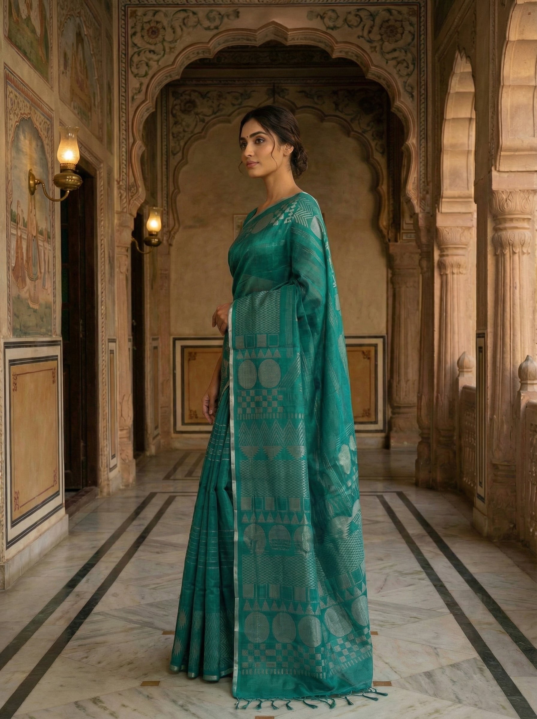 - Blouse Piece: 0.8 meters (unstitched, attached with saree)