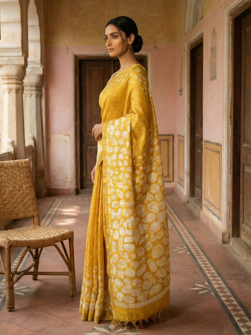 Celebrate understated elegance with this Pure Tussar Silk Saree in a rich mustard yellow hue, beautifully highlighting the natural texture and craftsmanship of handloom silk. The saree features a subtle woven check pattern across the body, adding depth and structure while maintaining a refined, minimal aesthetic.