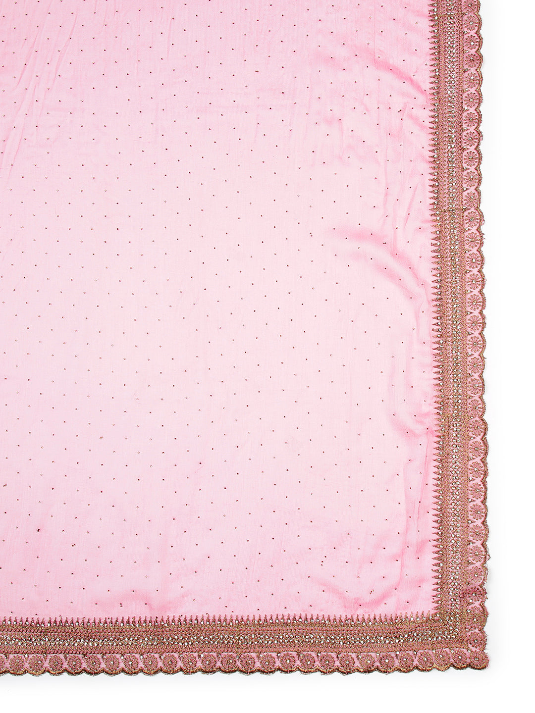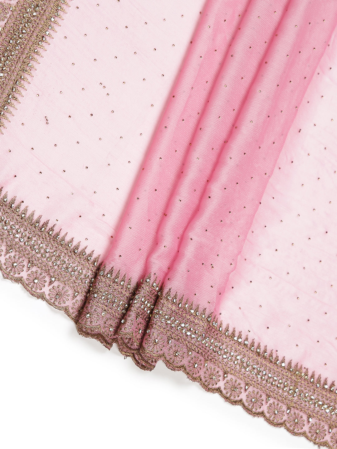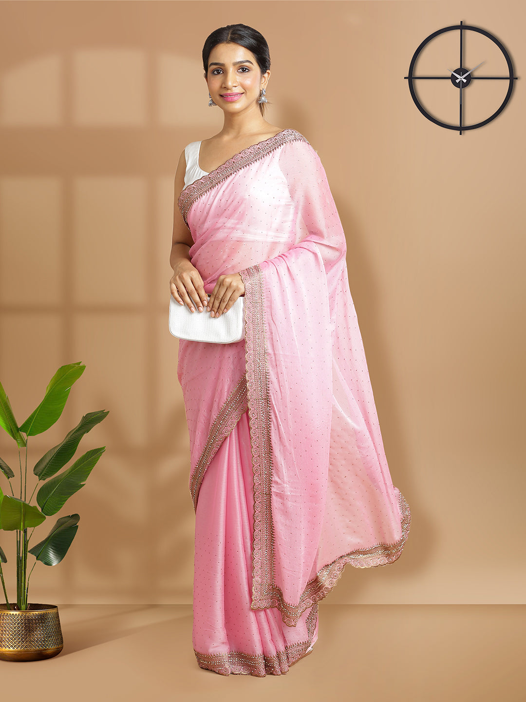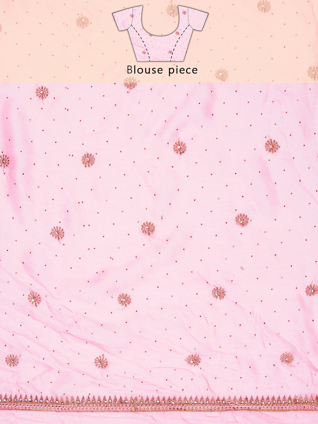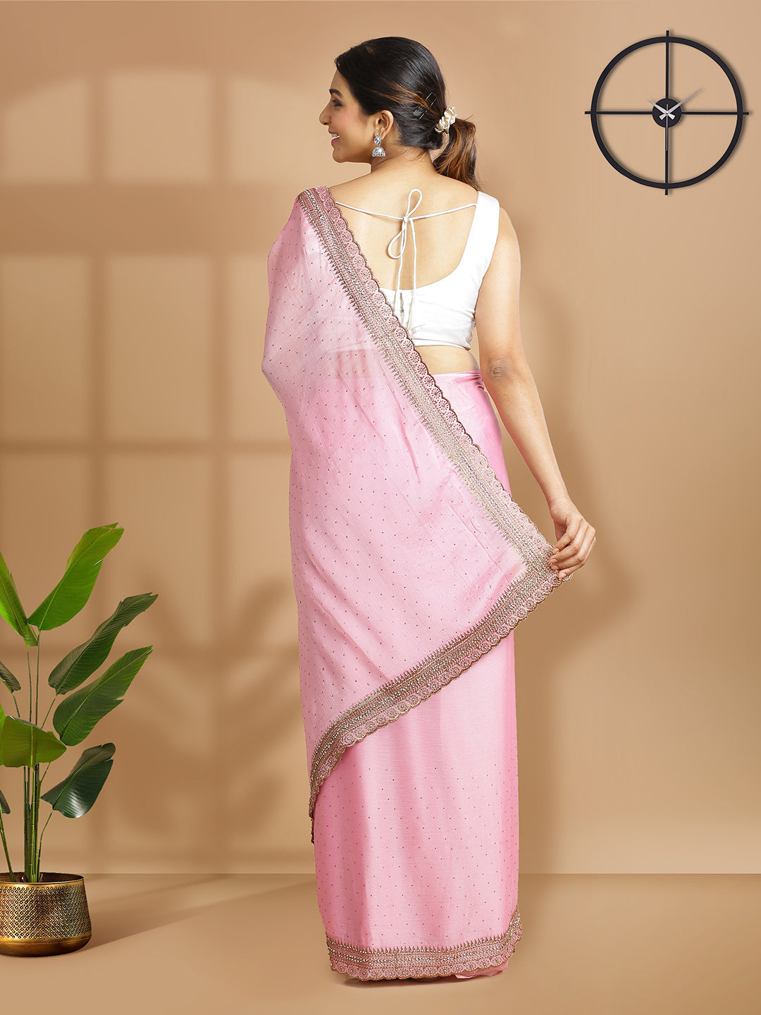 Rose Color Georgette Saree With Antique Mini Stones Over Body