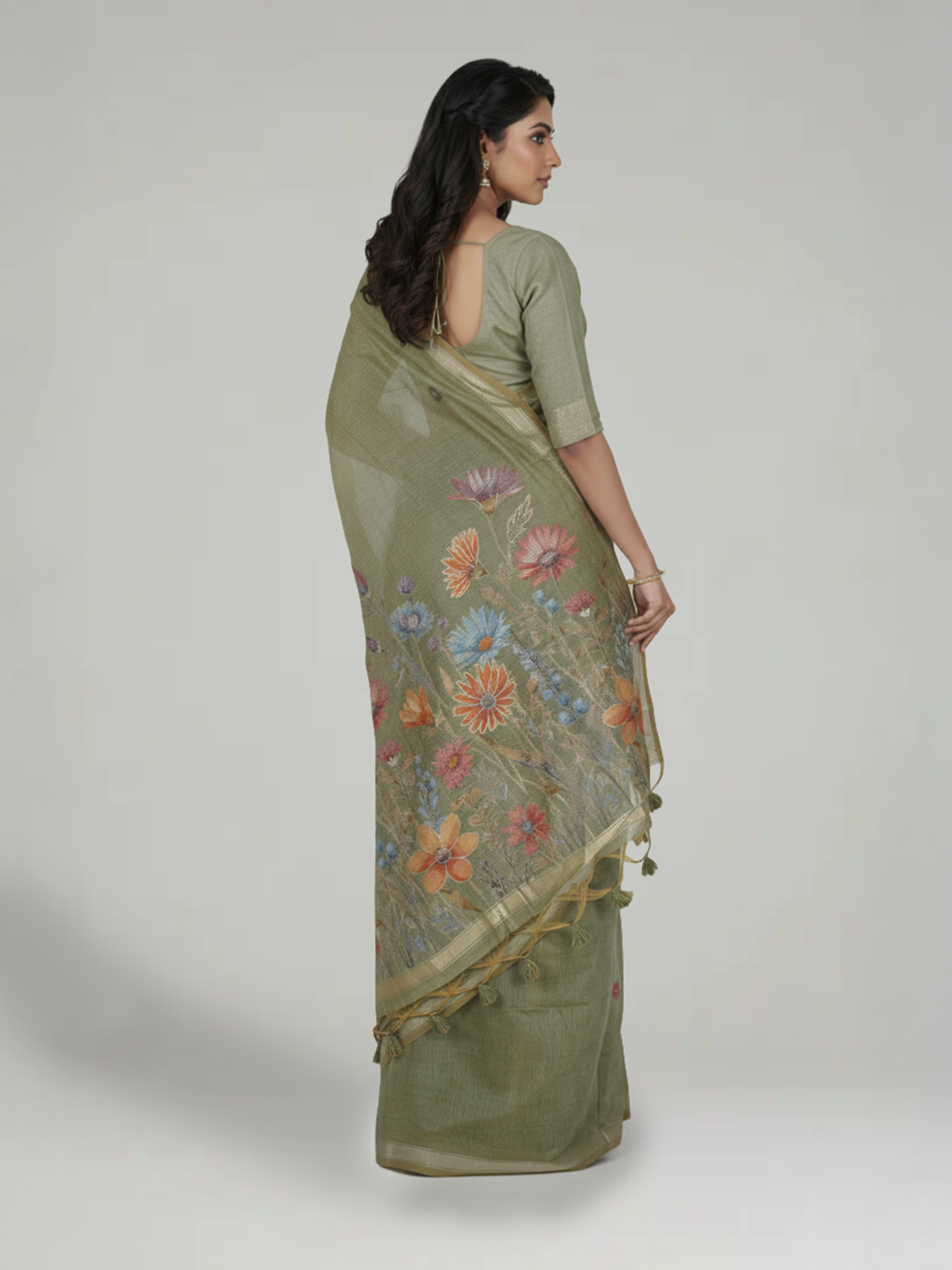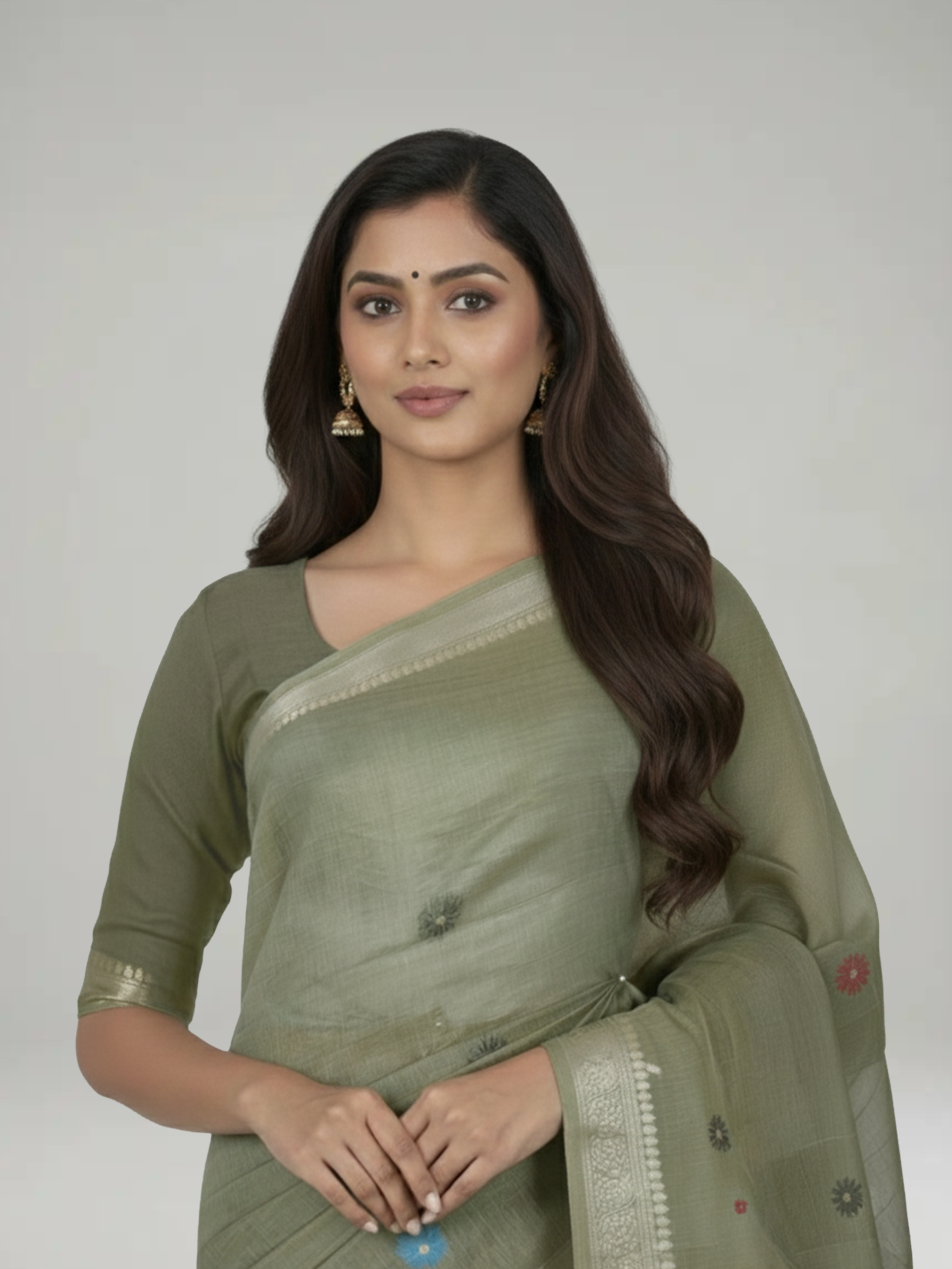 - Blouse Piece: 0.8 meters (unstitched, attached with saree)