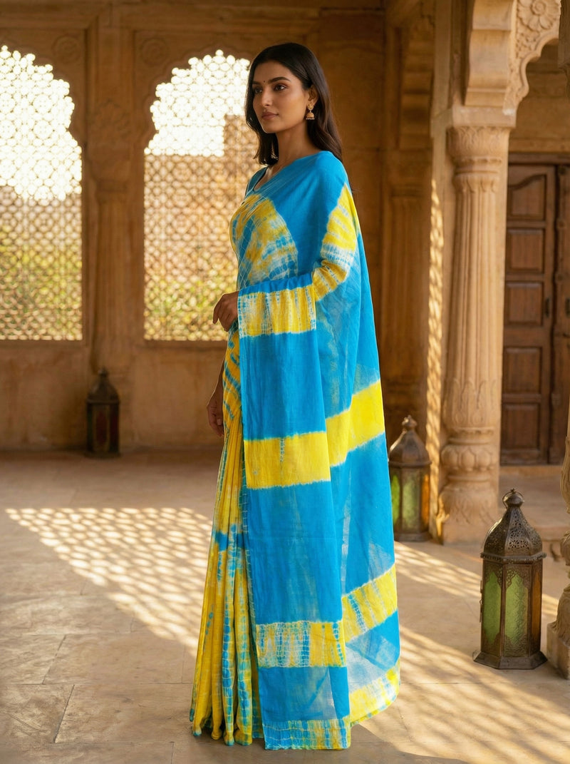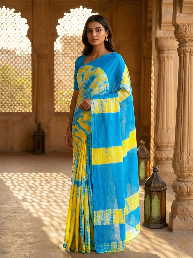 Elevate your everyday elegance with this Sea Blue and Yellow Printed Cotton Saree, a masterpiece that seamlessly blends traditional craftsmanship with contemporary design. The striking color palette features rich sea blue complemented by vibrant yellow accents, creating a visually captivating ensemble perfect for casual gatherings, festive occasions, or daily wear. Crafted from premium cotton, this saree offers exceptional breathability and comfort, making it ideal for India's warm climate while maintaining its shape and color through multiple washes. The intricate printed patterns showcase meticulous attention to detail, reflecting authentic textile artistry. Versatile and easy to drape, this saree transitions effortlessly from day to evening, making it an essential addition to any wardrobe. Experience the perfect harmony of style, comfort, and quality craftsmanship.