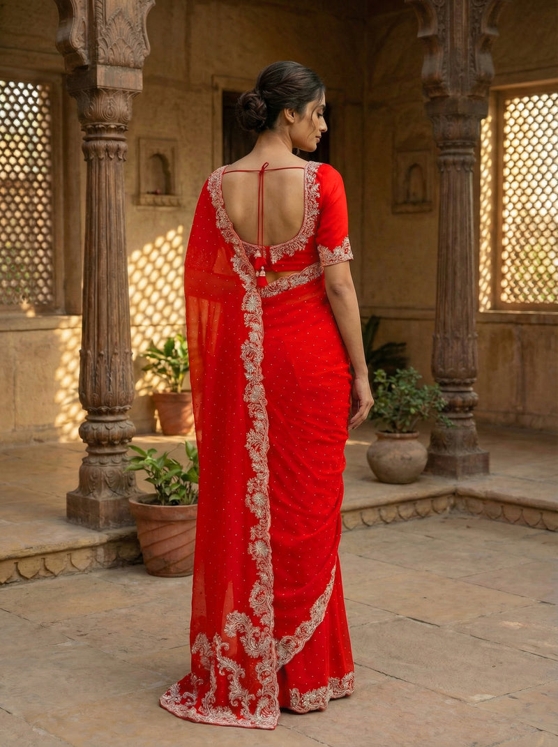 Red Embellished Designer Saree