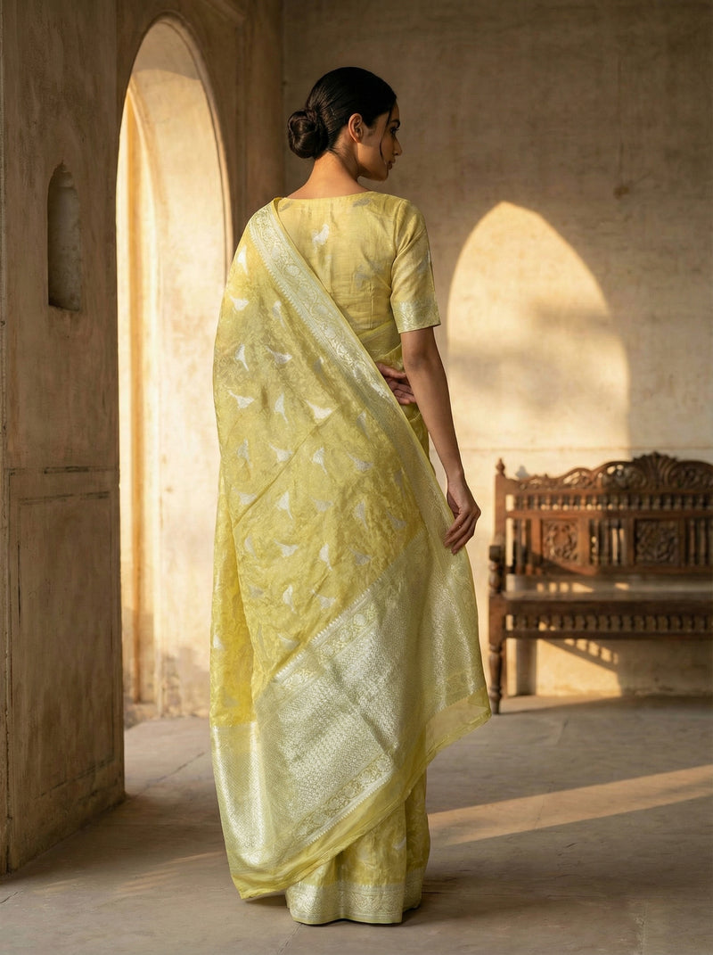 Brighten your wardrobe with this stunning lemon yellow semi-silk saree that's as cheerful as a sunny day! Adorned with delicate silver motifs that catch the light beautifully, this saree strikes the perfect balance between understated elegance and eye-catching charm. The expertly woven border adds a sophisticated finishing touch that elevates any occasion. Crafted from soft semi-silk fabric, it drapes gracefully while remaining comfortable for all-day wear. Whether you're attending a festive celebration or a casual gathering, this versatile saree brings warmth and radiance to your ethnic collection.