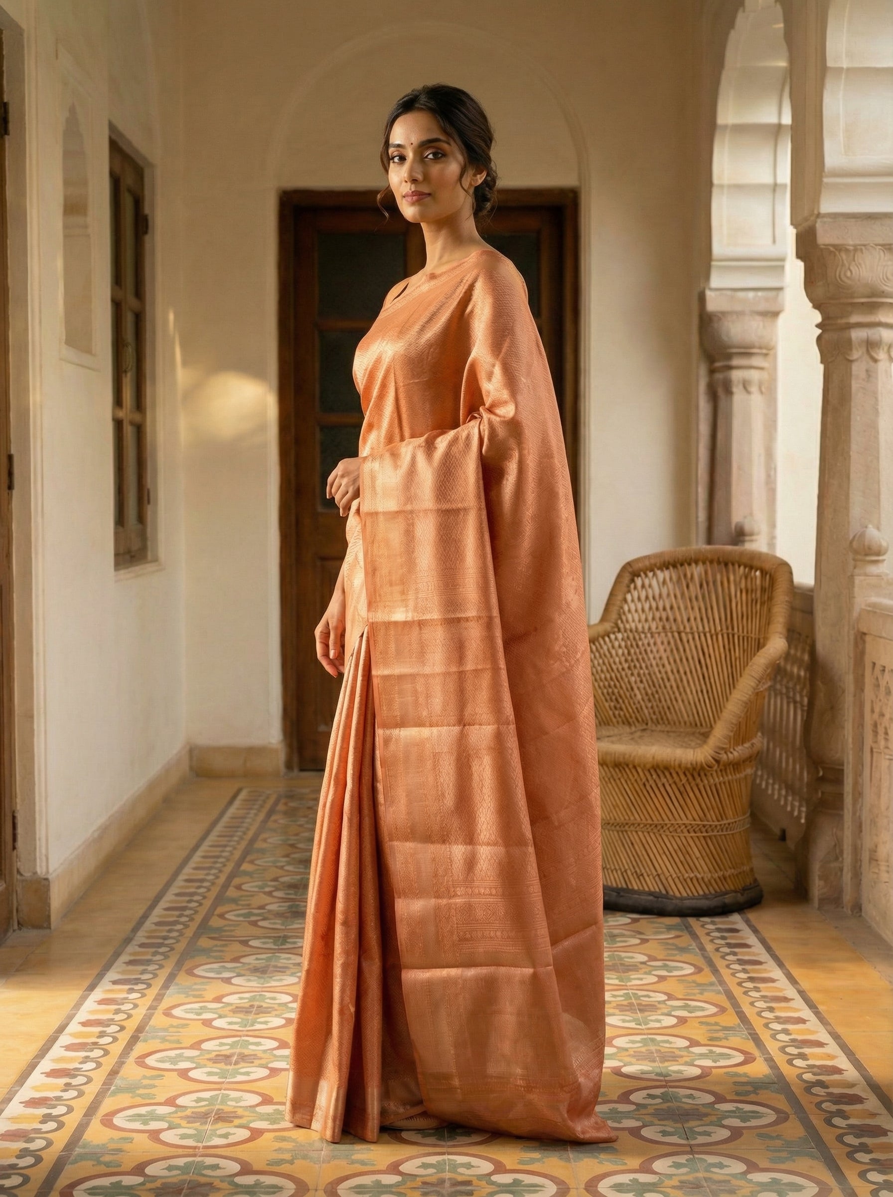 Peach Orange Semi Silk Saree with Elegant Self-Weave and Soft Sheen