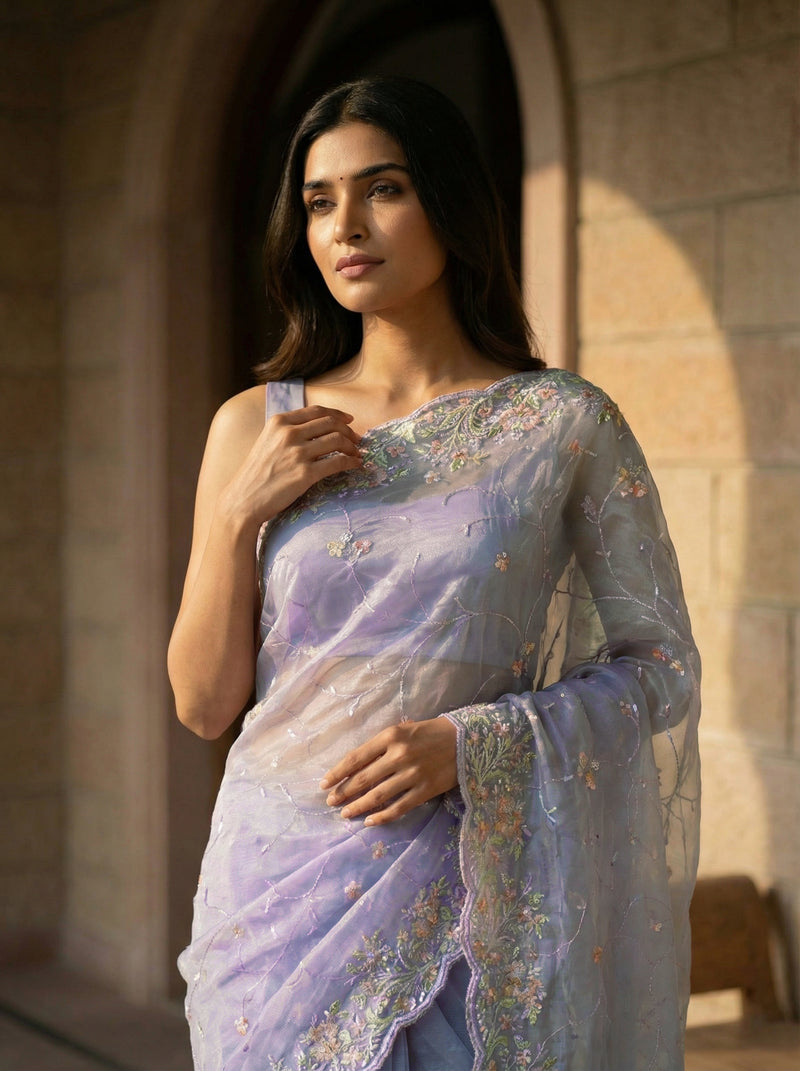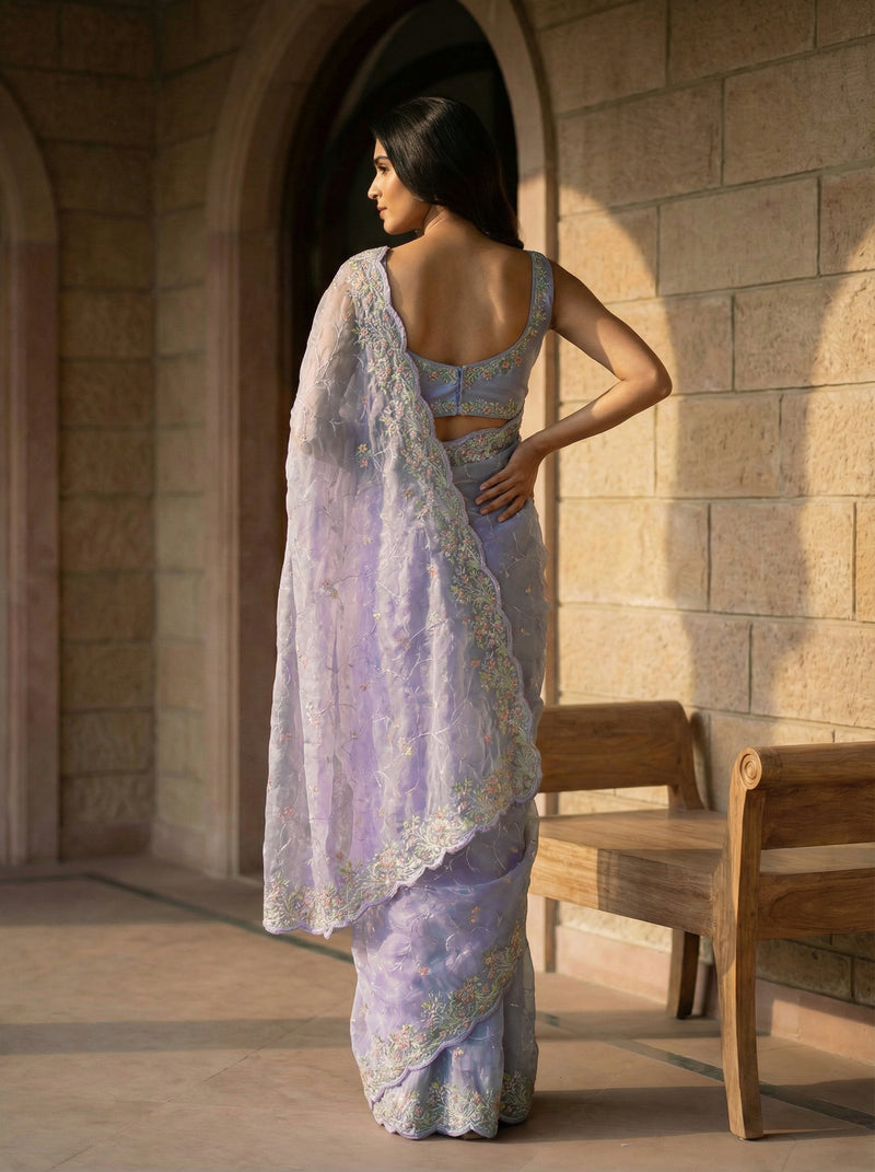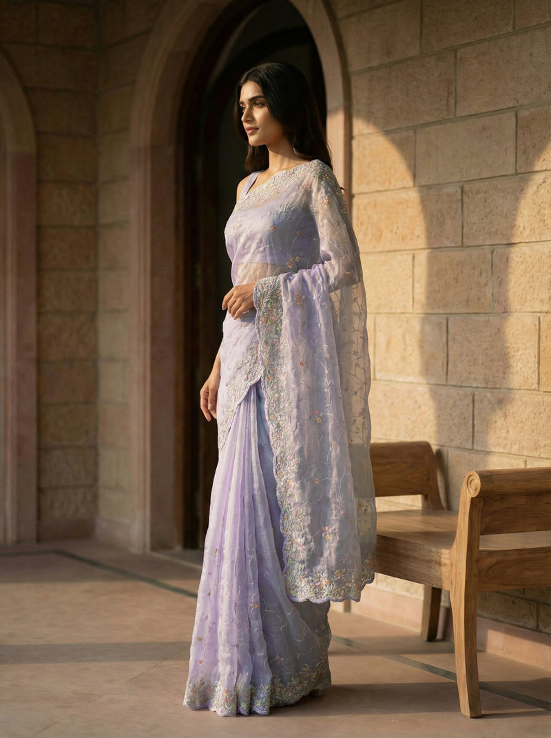 Elevate your ethnic wardrobe with this exquisite lavender saree, showcasing intricate embroidery work that reflects traditional craftsmanship. The soft lavender hue provides a sophisticated alternative to conventional saree colors, making it ideal for weddings, festivals, and formal occasions. Meticulously designed embroidery details enhance the fabric's elegance while maintaining the grace of classic ethnic wear. Versatile enough for both daytime celebrations and evening events, this saree combines timeless appeal with contemporary aesthetics. Perfect for those seeking refined, statement-making pieces that honor cultural heritage.