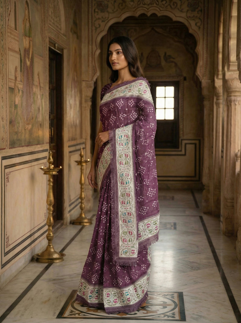 Grape Purple Bandhani Designed Ethnic Wear Saree