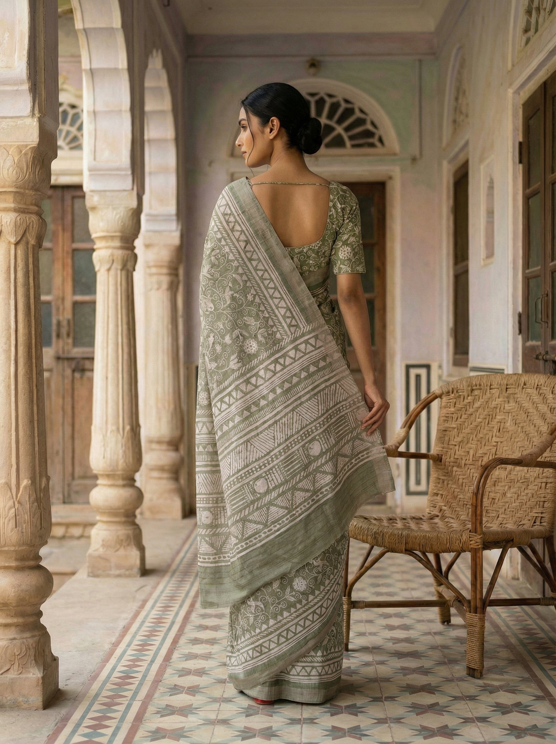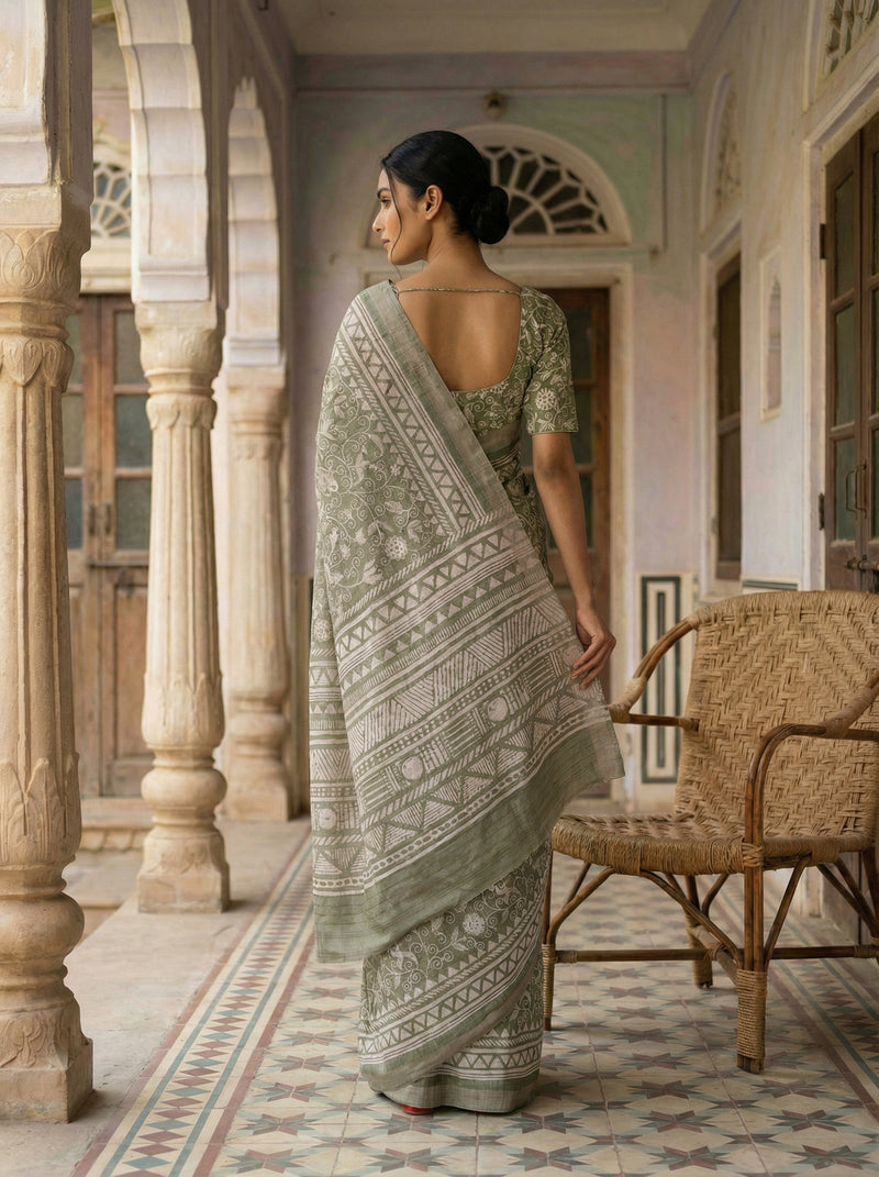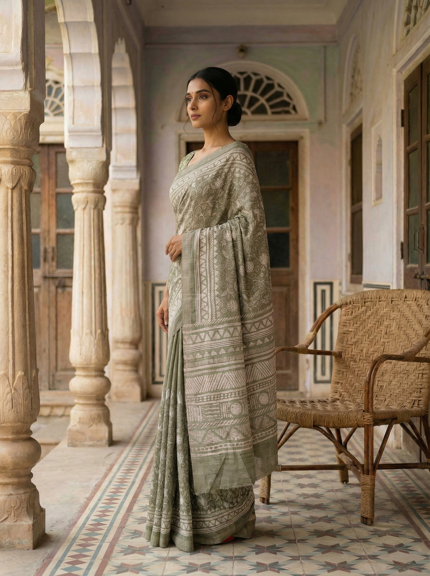 Elevate your ethnic wardrobe with this exquisite pastel green saree, a masterpiece of traditional craftsmanship. The entire ensemble showcases heavy white embroidery that commands attention, with intricately embellished borders and pallu that frame the silhouette beautifully. The delicate pastel hue provides a sophisticated canvas for the ornate threadwork, making it ideal for weddings, festivals, and formal celebrations. This saree seamlessly blends timeless elegance with contemporary aesthetics, offering versatility for both traditional and modern styling. Perfect for those who appreciate fine embroidery and refined color palettes.