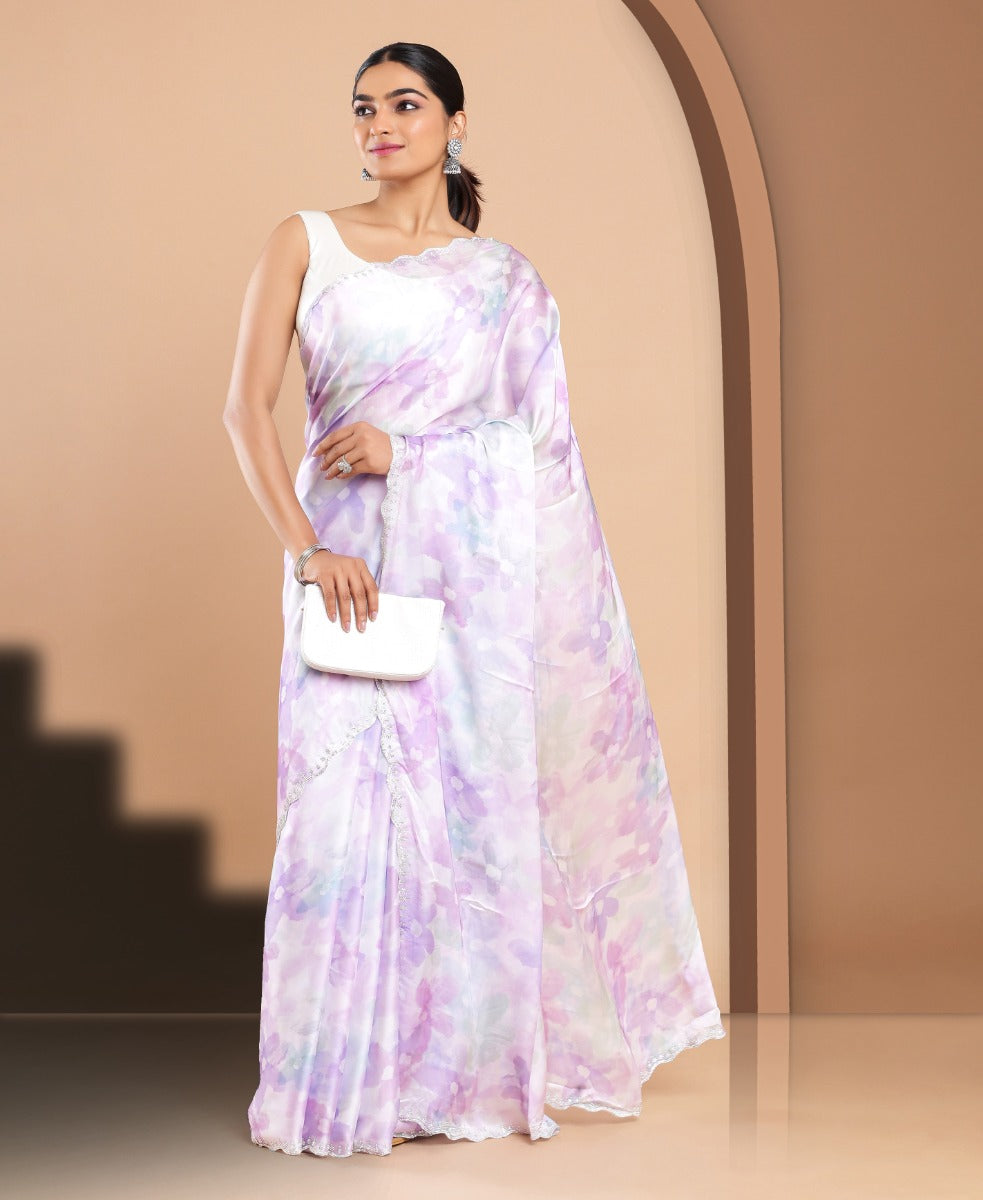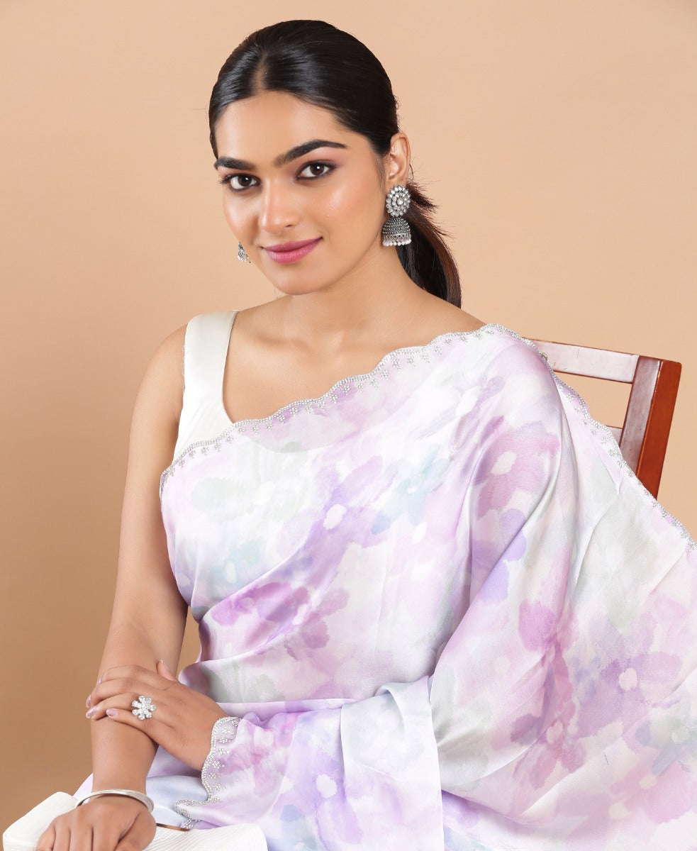 Details:Full Of Lavender Color Satin Saree With Abstract Design & Stone Border With Blouse