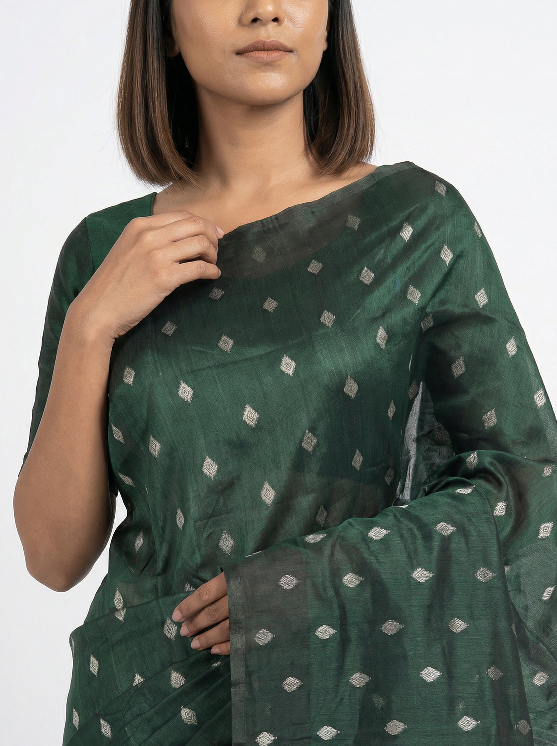Semi Silk Designer Bottle Green Saree with Small Butta Work Blouse Piece