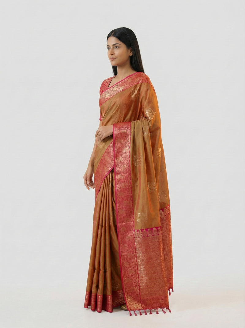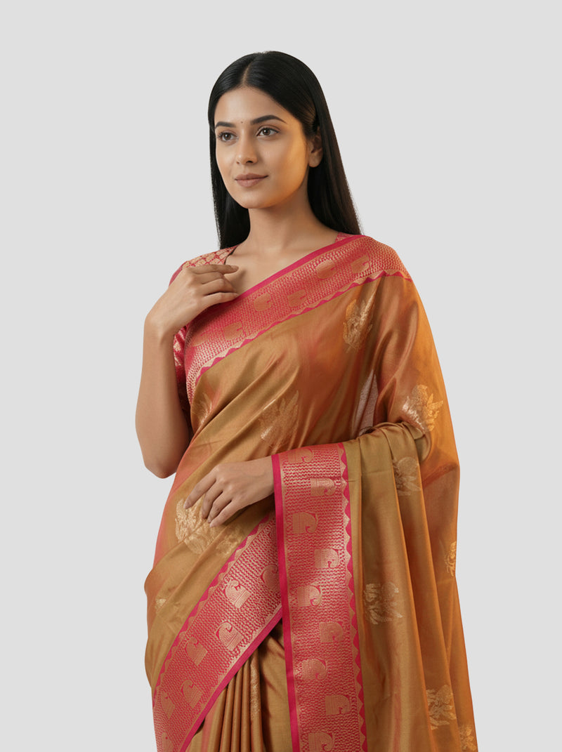 Semi Silk Double Shade Traditional Saree with Gapped Buttas