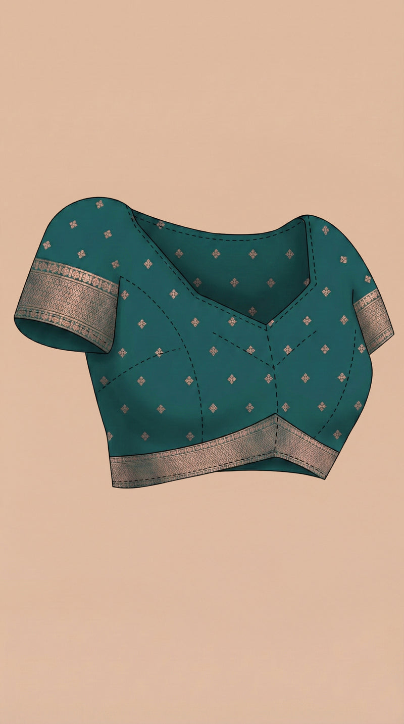 Experience the grace of traditional Indian textiles with this exquisite semi silk saree. Crafted from premium semi-silk fabric, it features a delicate floral border that frames the drape with refined elegance. The accompanying bottle green blouse piece showcases intricate golden butta work, creating a harmonious color combination that stands out at weddings, festivals, and special celebrations. The fabric's natural sheen and smooth texture ensure comfortable all-day wear while maintaining its sophisticated appearance. Whether you're attending a family gathering or a formal event, this saree's blend of classic design and quality craftsmanship makes it a cherished addition to any traditional collection.