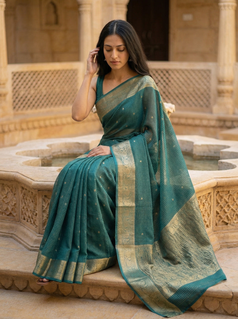 Georgette Banarasi Teal Green Rich Zari Butta Saree