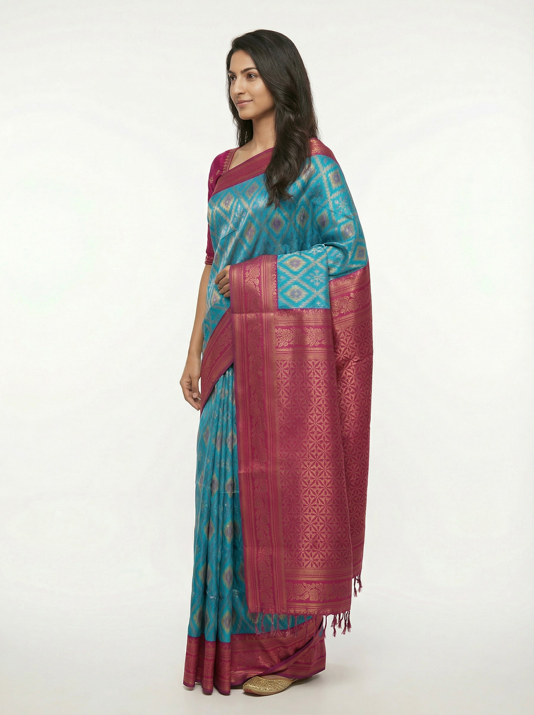 Experience timeless elegance with this semi-silk saree in captivating peacock blue, expertly crafted for graceful draping and all-day comfort. The luxurious semi-silk blend offers a perfect balance of softness and durability, maintaining its pristine appearance through wear. Complemented by a striking wine-hued blouse, this ensemble delivers a sophisticated color contrast that works beautifully for weddings, festivals, and festive gatherings. The peacock blue shade flatters diverse complexions while the wine accent adds contemporary flair to traditional aesthetics. A versatile investment piece that transitions seamlessly from celebrations to formal events, this saree combines heritage craftsmanship with modern sensibilities for the discerning wearer.