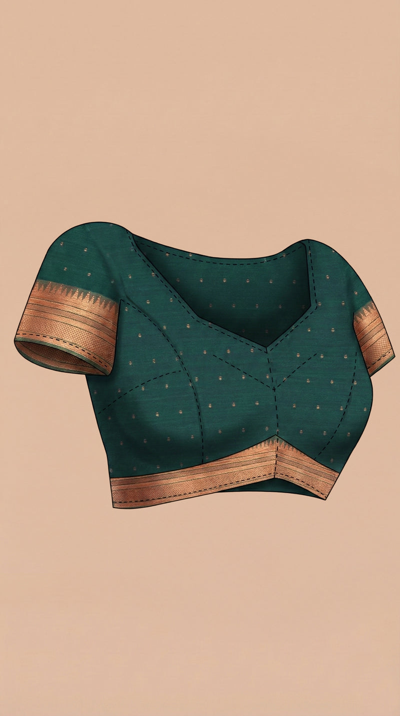 Semi Silk Wood Brown Saree with Contrast Bottle Green Blouse