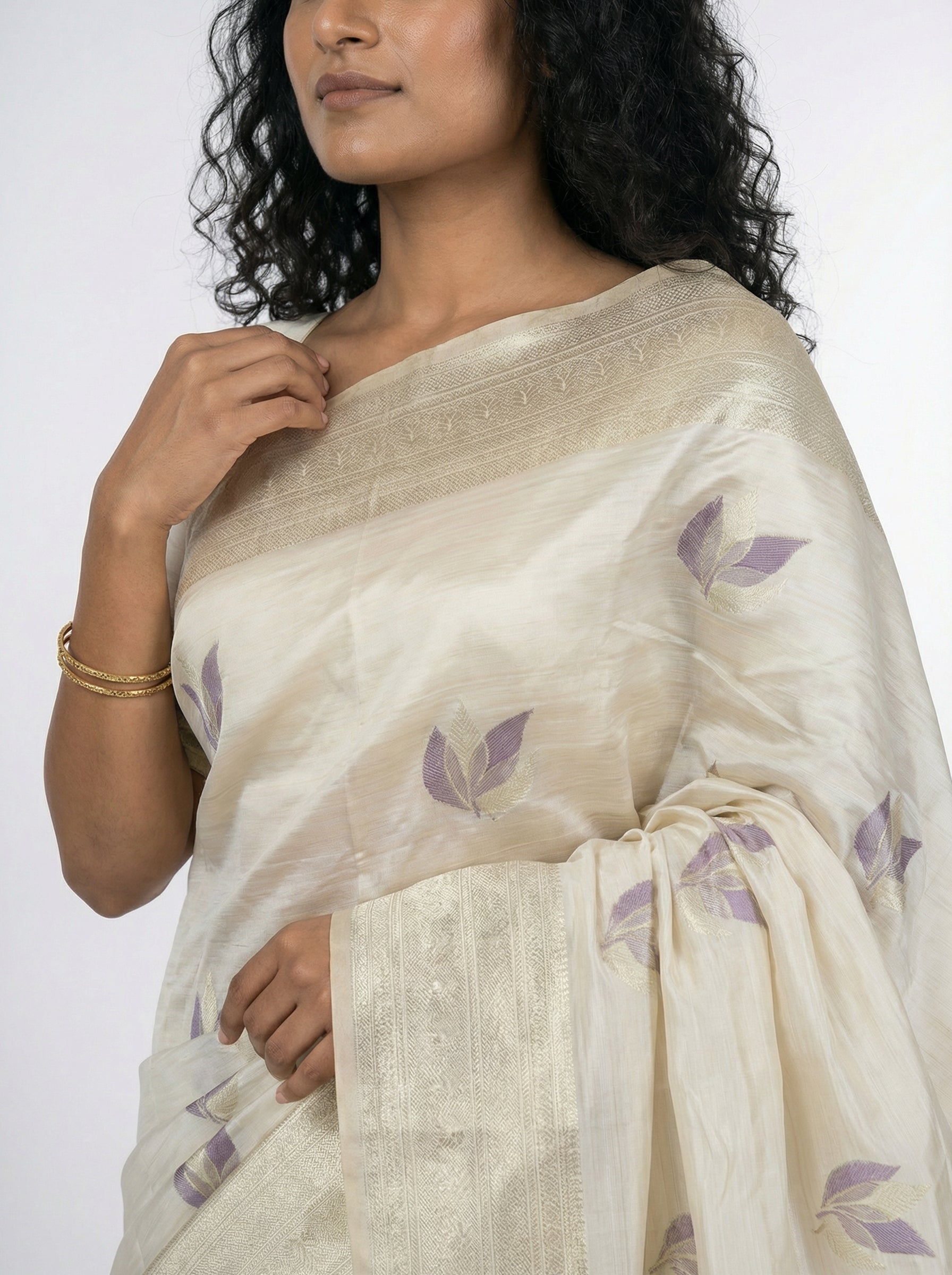 Drape yourself in timeless elegance with this semi silk saree in soft off-white. Featuring a traditional pallu with intricate leaf weave detailing, this ethnic saree combines classic craftsmanship with understated sophistication. Perfect for festivals, celebrations, and special occasions, the luxurious semi silk fabric offers a graceful drape and comfortable wear throughout the day. An essential addition to any traditional wardrobe, this saree showcases authentic weaving techniques that celebrate Indian textile heritage.