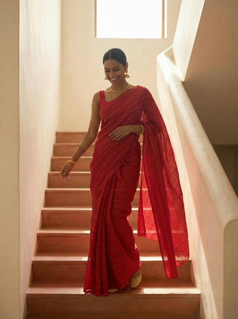 Elevate your ethnic wardrobe with this striking synthetic saree in vibrant bright red, adorned with an elegant stripe pattern that adds sophistication to any occasion. Crafted from high-quality synthetic fabric, this saree offers easy maintenance and durability while delivering a polished, refined look. Perfect for festivals, celebrations, or everyday elegance, the bold red hue combined with intricate striping creates a timeless appeal. Lightweight and comfortable to wear, this saree drapes beautifully and maintains its shape throughout the day. An ideal choice for those seeking traditional style with modern convenience.