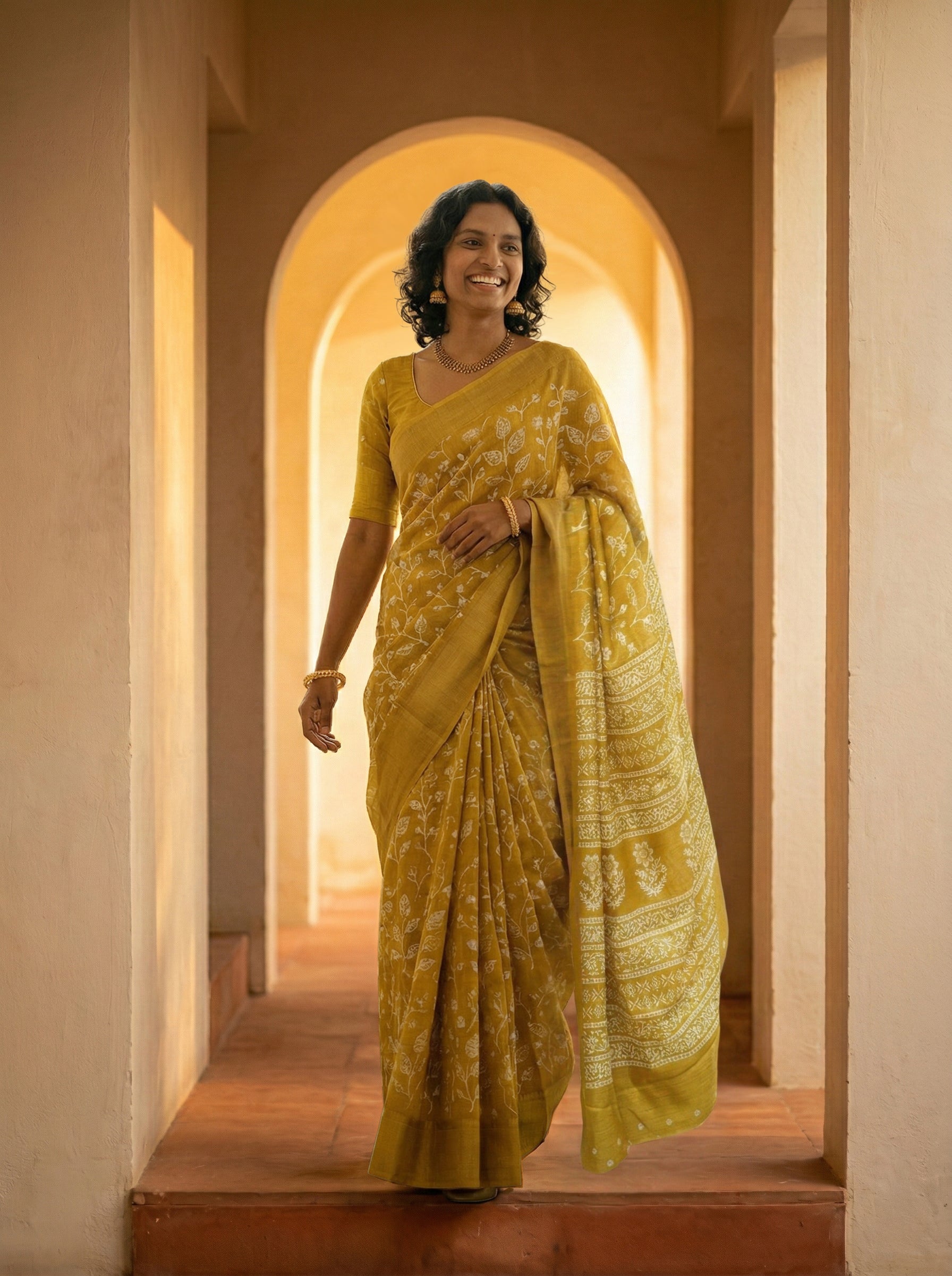 Elevate your ethnic wardrobe with this vibrant synthetic saree in bright yellow, adorned with an intricate floral pattern. Crafted from durable synthetic fabric, this saree offers easy maintenance and long-lasting color retention, making it perfect for festive occasions, celebrations, and everyday wear. The eye-catching floral design adds elegance and charm to your traditional look. Lightweight and comfortable, this saree drapes beautifully and is ideal for those seeking a blend of style and practicality. A versatile choice for weddings, parties, and cultural events.